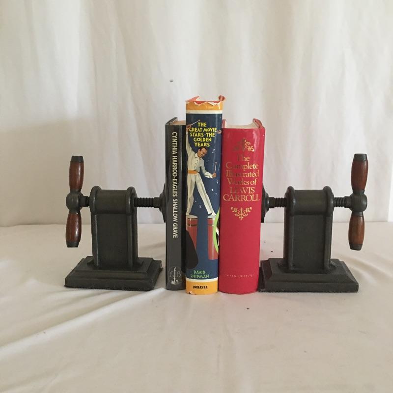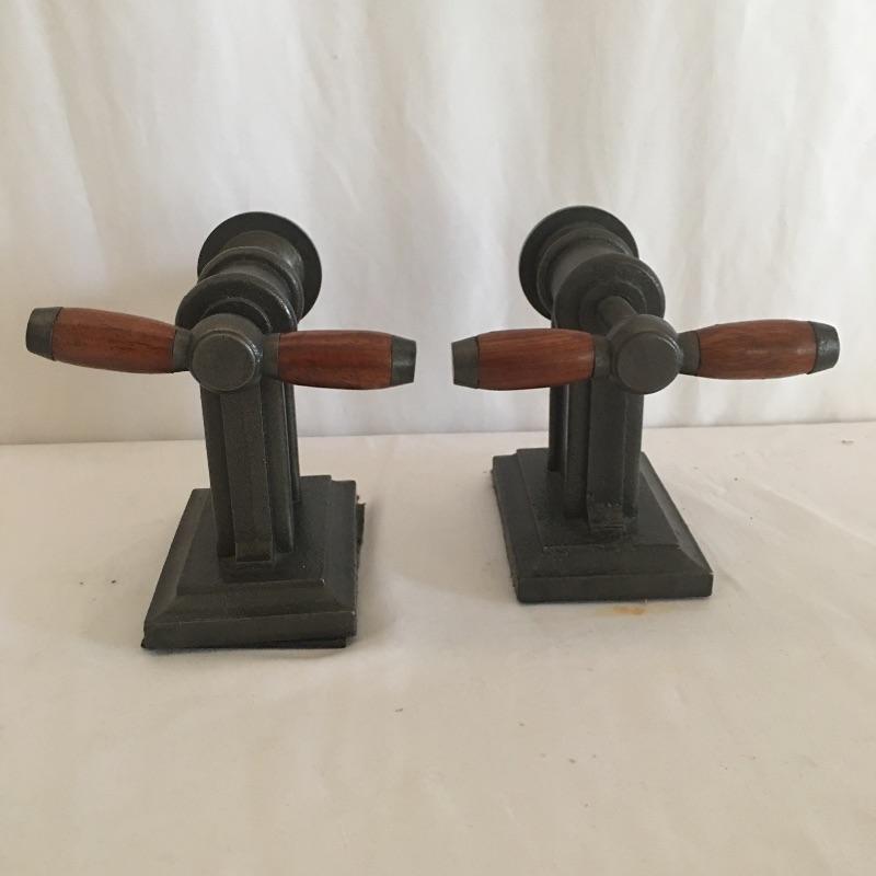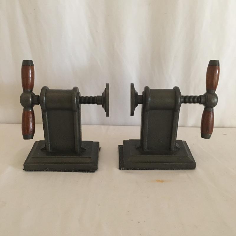 Truly unique bookends come with an industrial flare. Great gift for a woodworker or anyone who likes something a little bit different! Books not included but they are available in Lot 6. Bookends each measure approximately 5.5” x 5” x 5.5”.