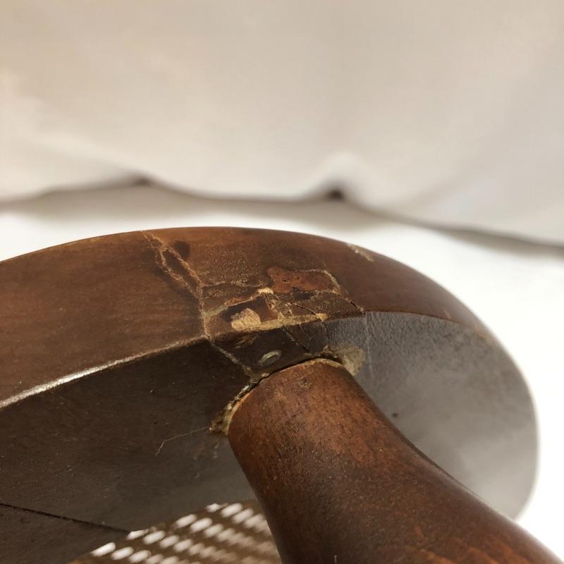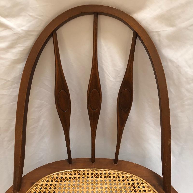 This cane bottom chair is stunning and lightweight. Chair looks great with a few scratches and appears to have been repaired on front right, see pictures. Chair measures 19.5” x 20.5” x 35” with a seat height of 18”.