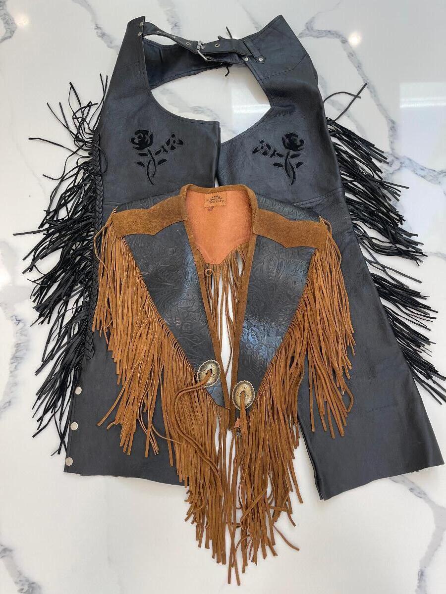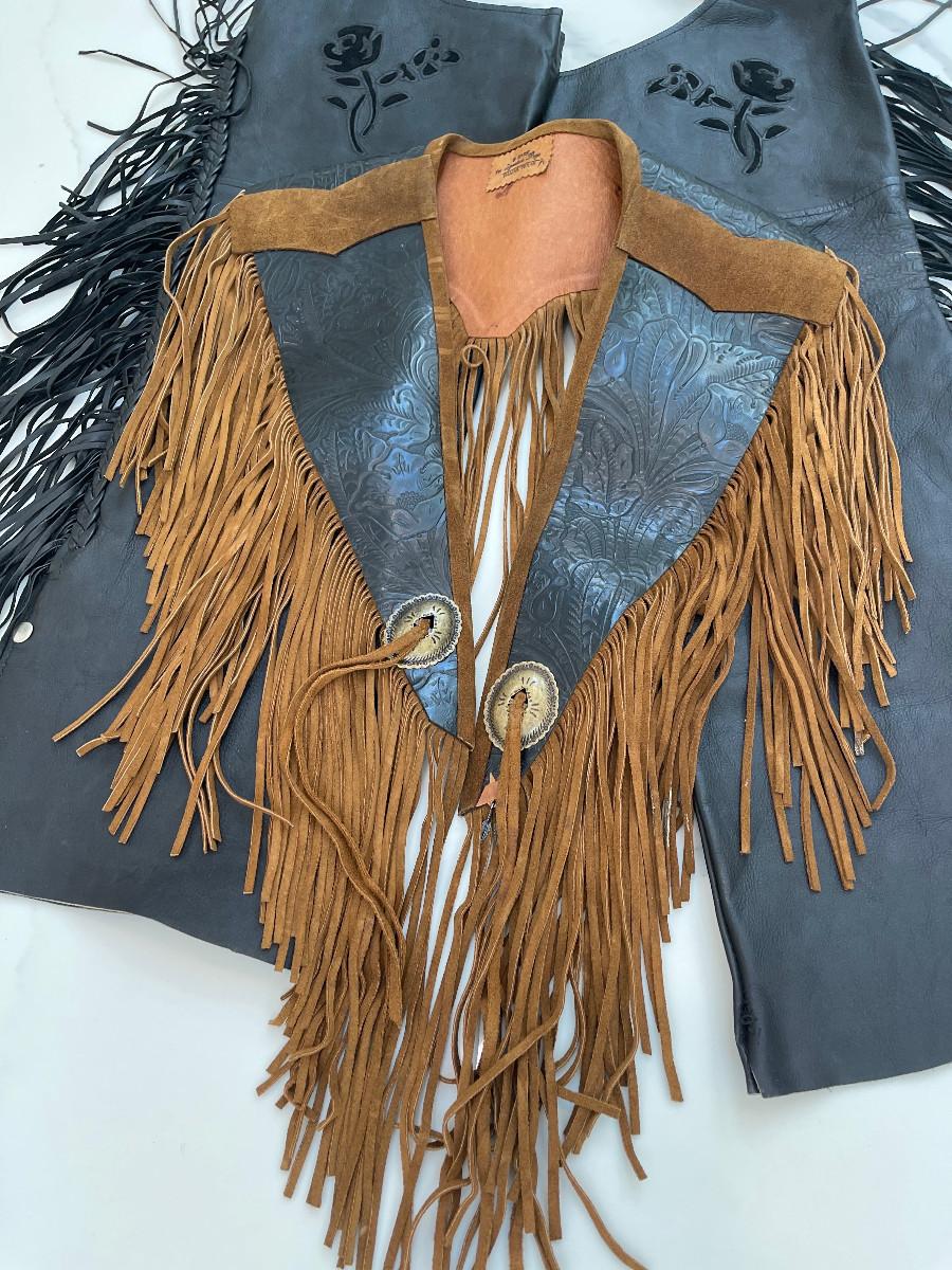 Genuine Leather Fringe Vest By B. Hyde Dallas, TX and Pants by "A1" (size S).