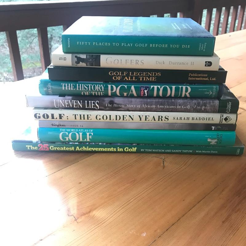 Lot 232 - Golf Coffee Table Books and Framed Saying