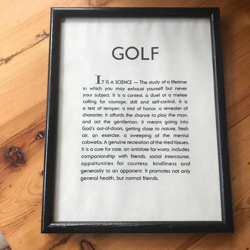 This lot includes a framed saying about Golf ( see pix) measures 9” x 11” and nine handsome colorful golf books for the enthusiast. Shipping available. Please call UPS at 828-252-6930 for a shipping quote prior to bidding.