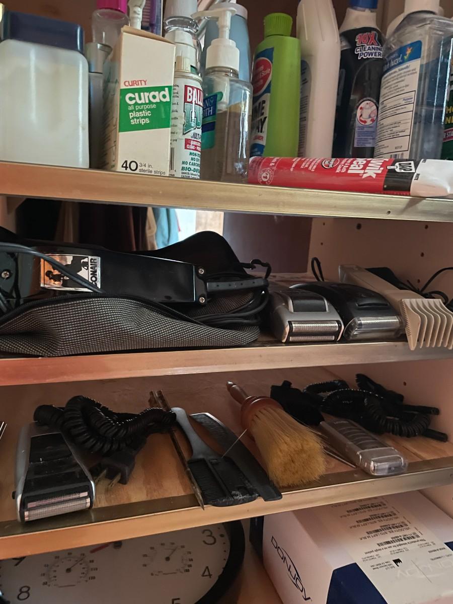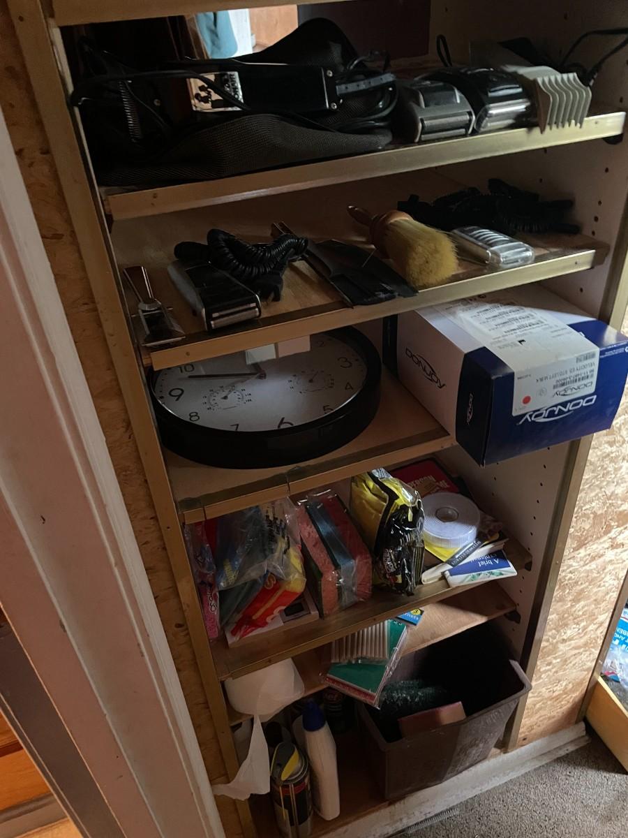 shelves of misc. toiletries, clippers, chemicals, etc.