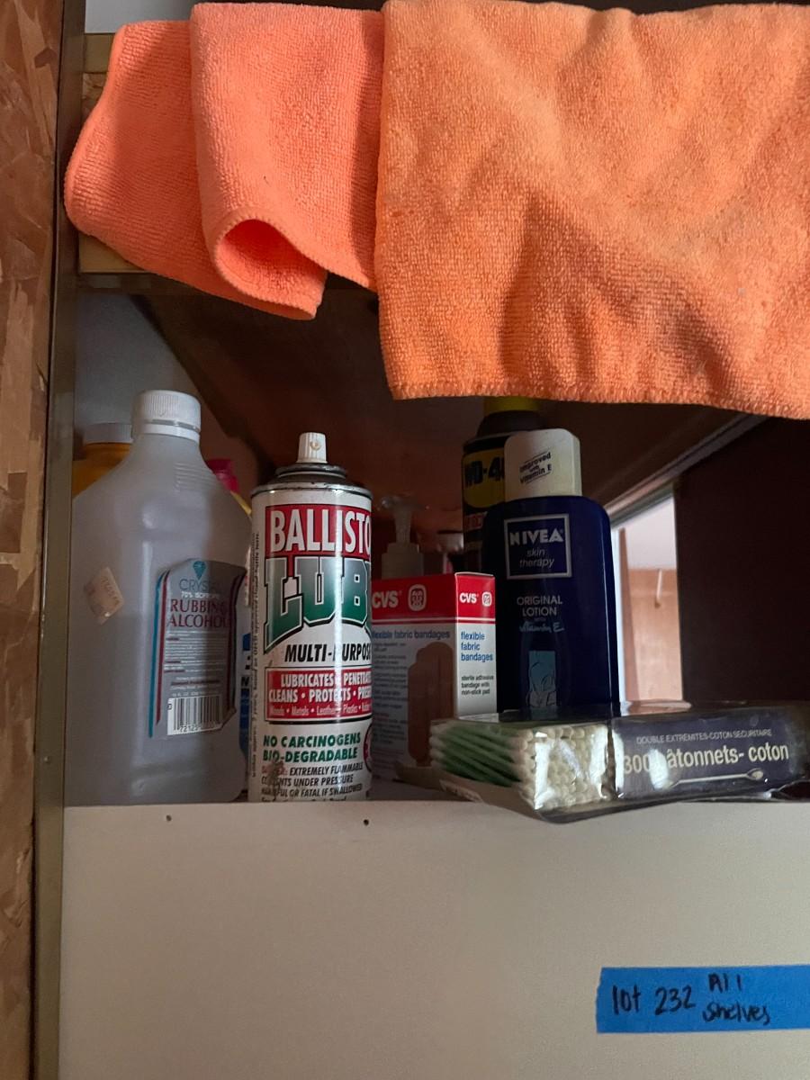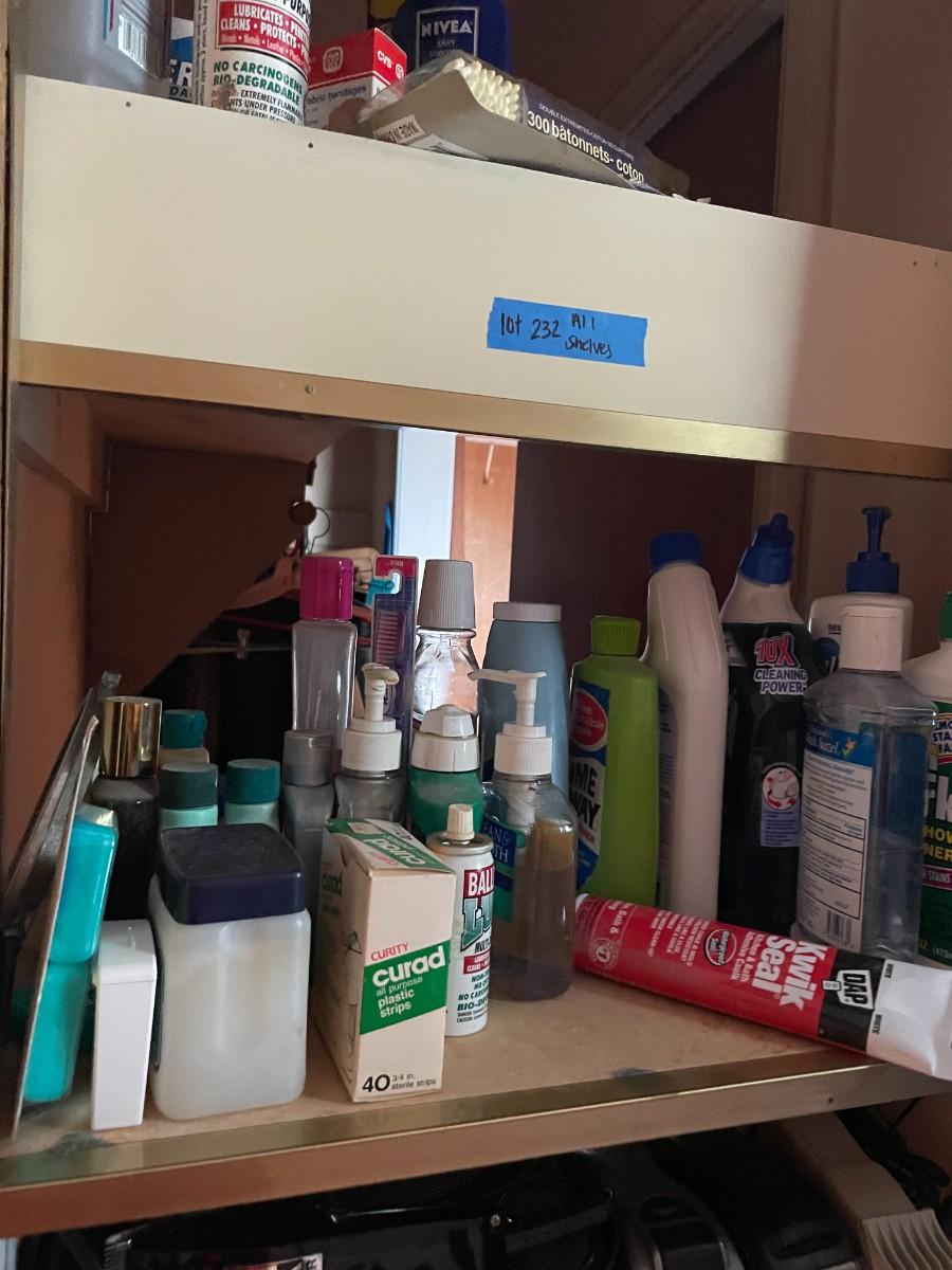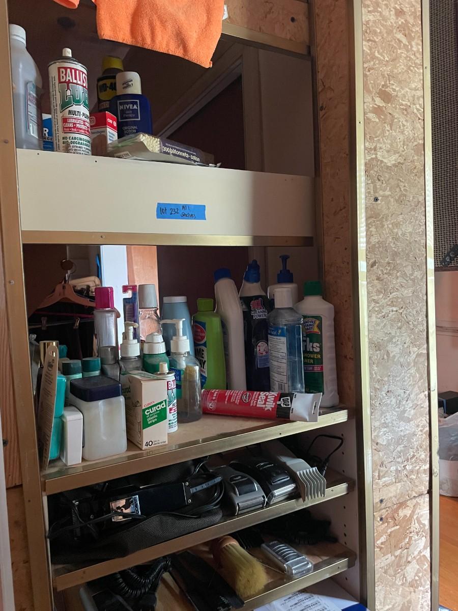 lot 232- shelves of misc. toiletries, clippers, chemicals, etc.