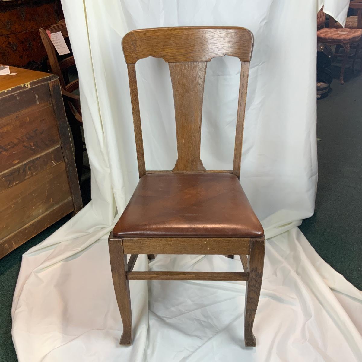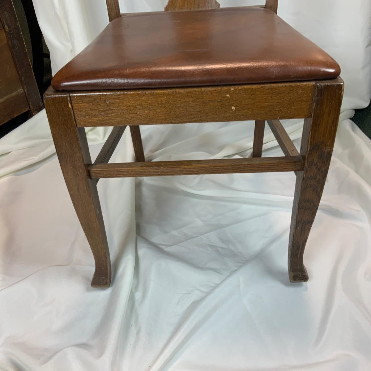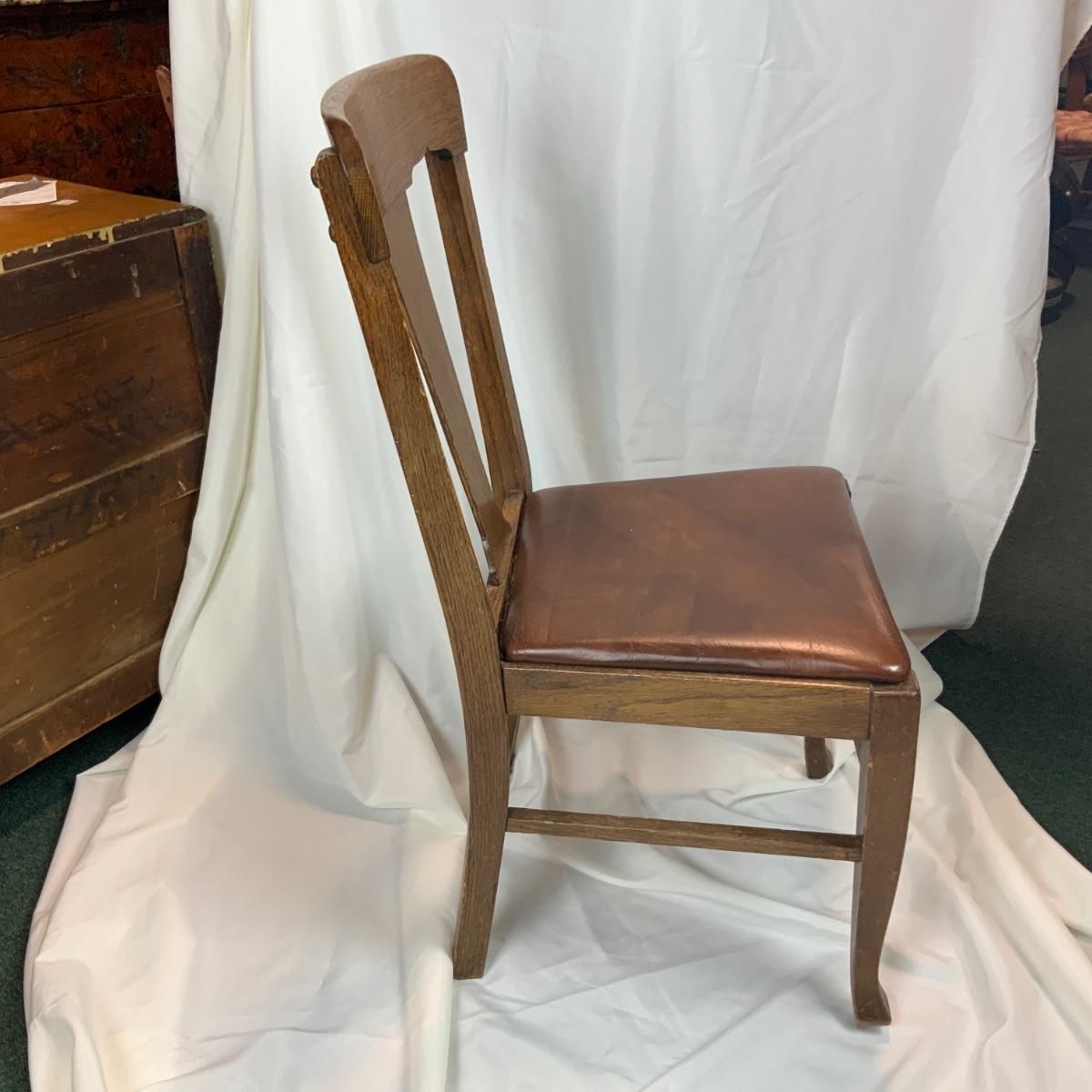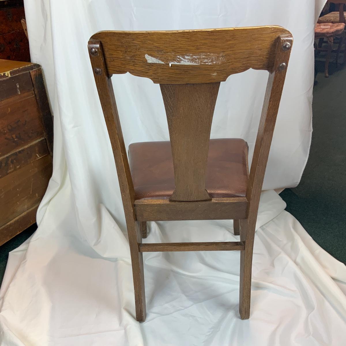 Single chair with faux, leather seat. Sturdy and ready to rock! //::\\ Please see photos for details and condition. No attempt has been made to hide any imperfections. All items listed in this auction are warehouse items, and need to be cleaned. A majority of the items need restoration as well. All items are sold AS IS and WITHOUT GUARANTEE. If you are uncertain about an item, DO NOT BID. Due to the nature of this online auction in-person inspection is HIGHLY recommended. All Sales are FINAL. Pick Up Times are FIRM. Please confirm with your own schedule that you can pick up in the scheduled times listed in the Terms and Conditions. Any questions please message the auctioneer. DO NOT Contact The Harp Gallery.