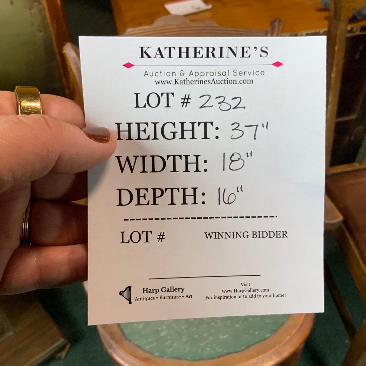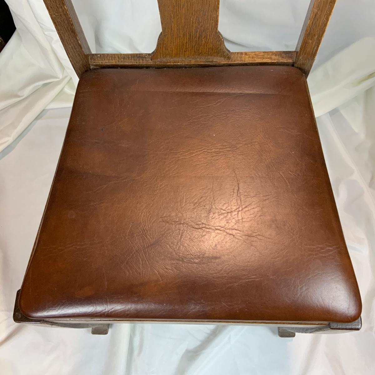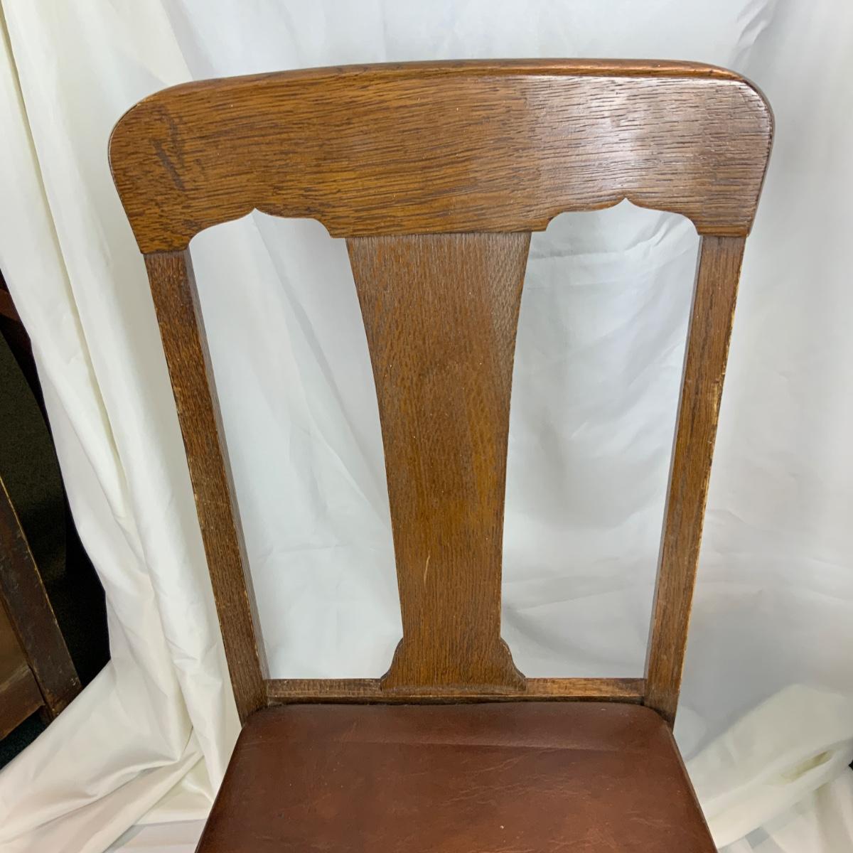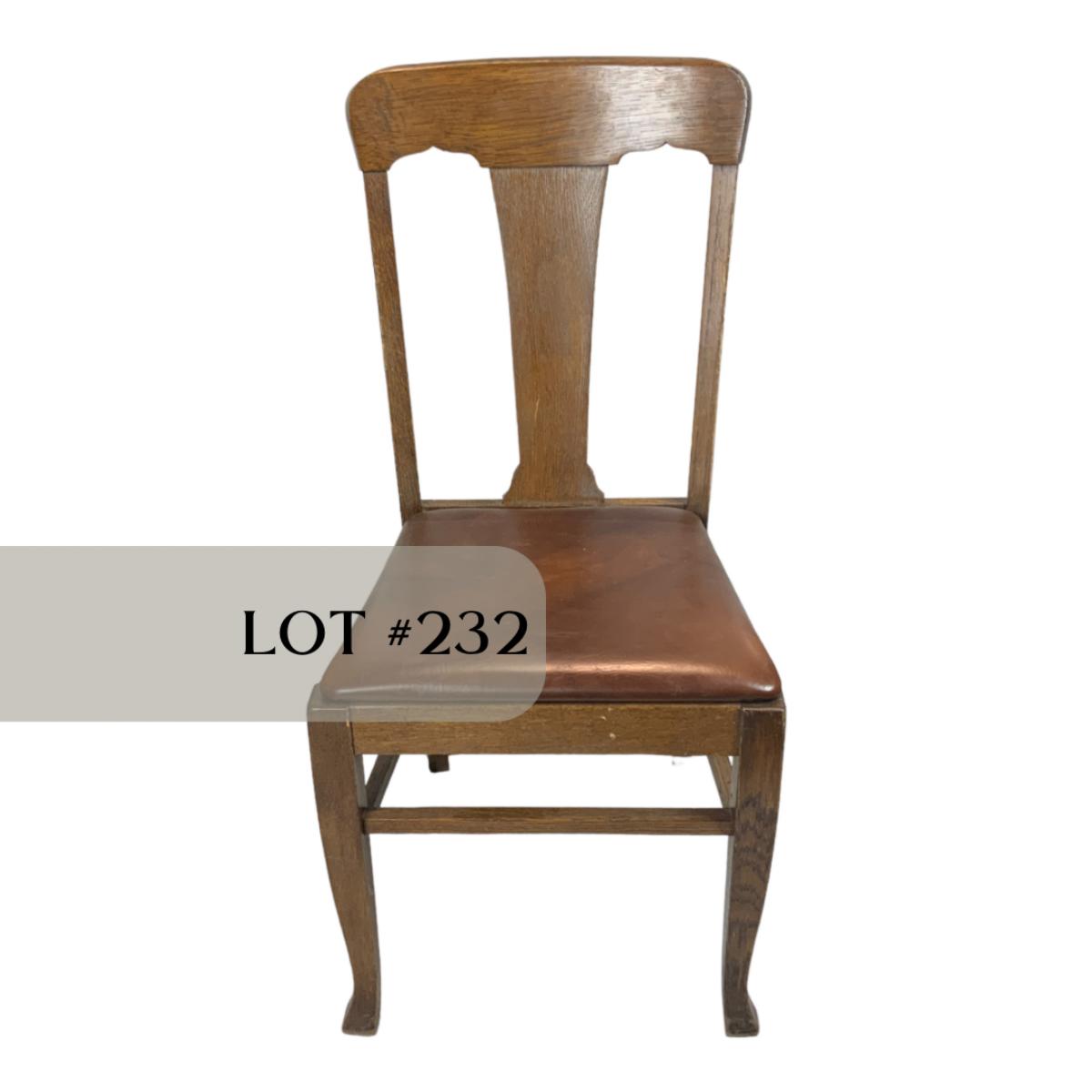 Single chair with faux, leather seat. Sturdy and ready to rock! //::\\ Please see photos for details and condition. No attempt has been made to hide any imperfections. All items listed in this auction are warehouse items, and need to be cleaned. A majority of the items need restoration as well. All items are sold AS IS and WITHOUT GUARANTEE. If you are uncertain about an item, DO NOT BID. Due to the nature of this online auction in-person inspection is HIGHLY recommended. All Sales are FINAL. Pick Up Times are FIRM. Please confirm with your own schedule that you can pick up in the scheduled times listed in the Terms and Conditions. Any questions please message the auctioneer. DO NOT Contact The Harp Gallery.