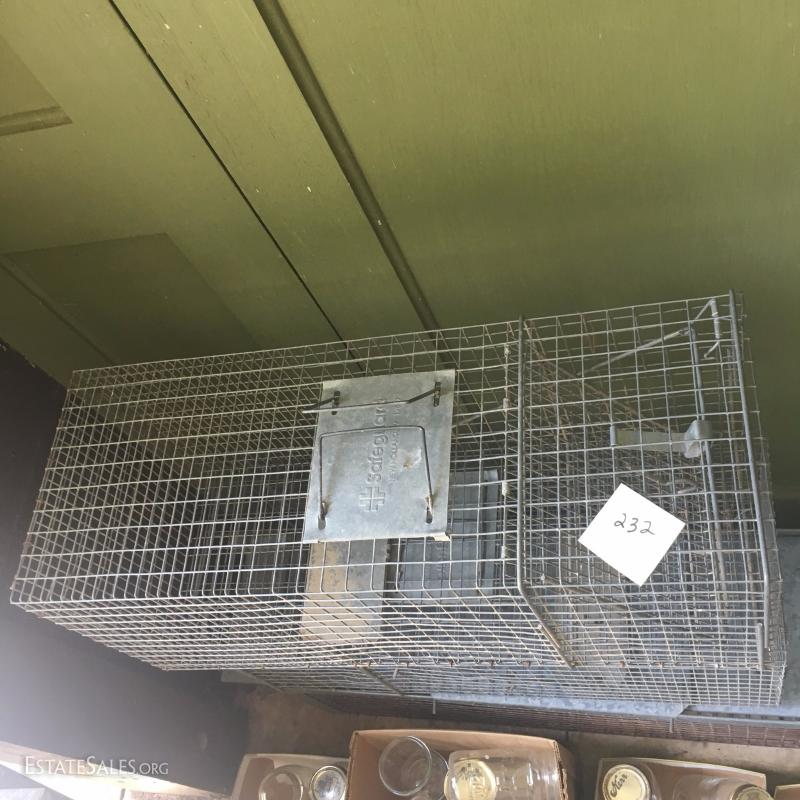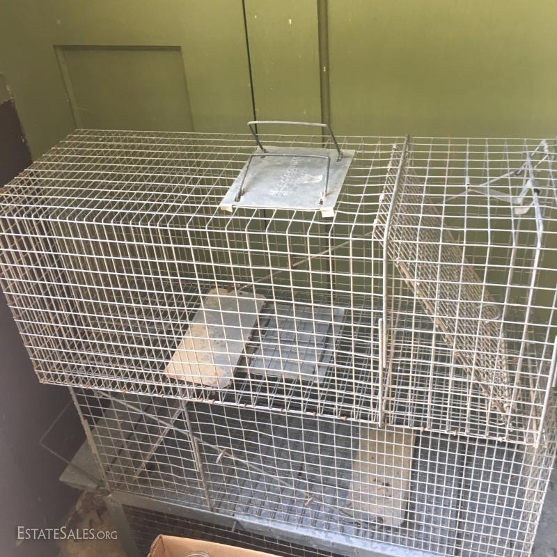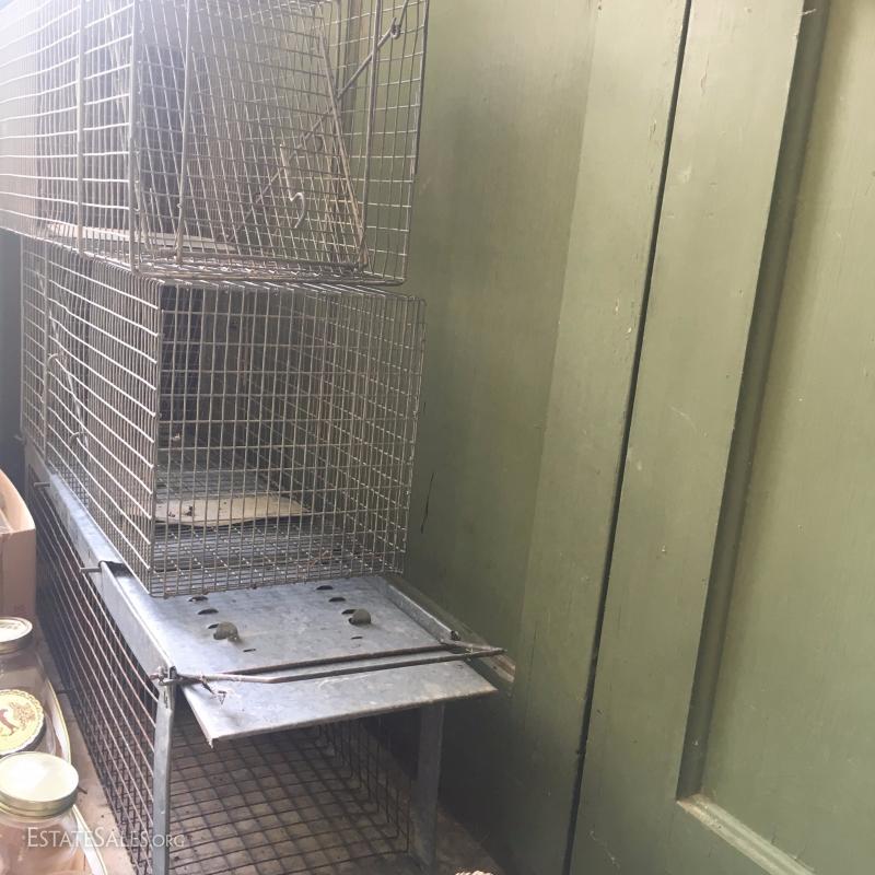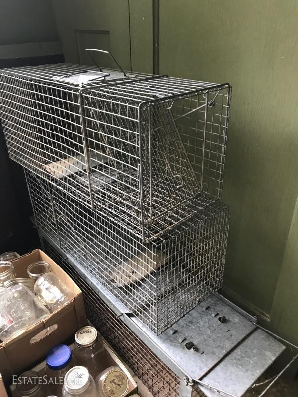 Three metal animal Traps by Safeguard New Holland. 2 Small 30"l x 11"w x 13" h. Large 36.5"l x 11"w x 11"h Jars in photo are not part of Lot.