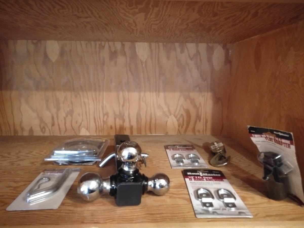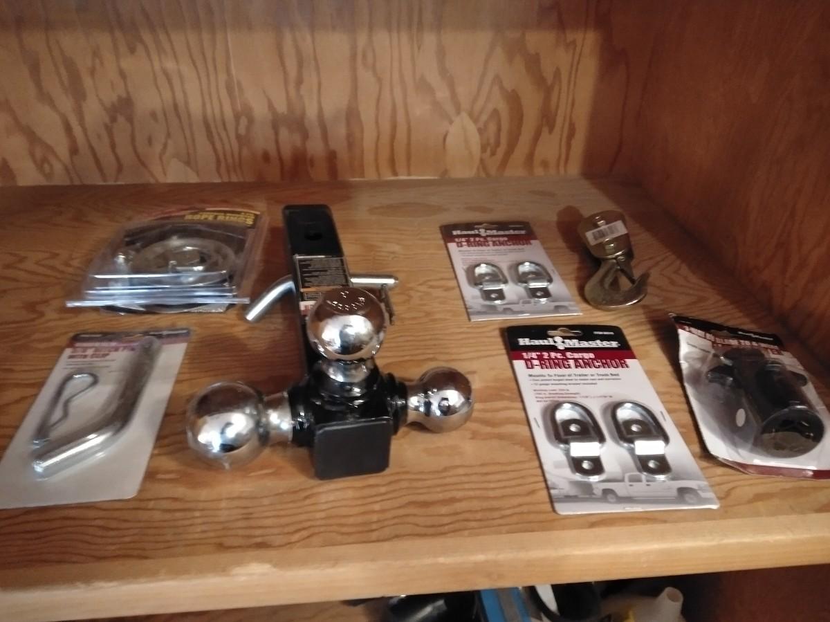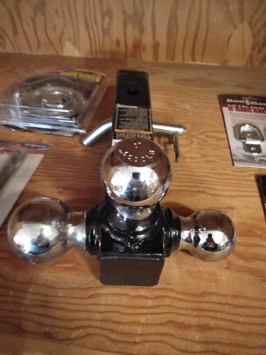 THREE BALL HITCH, NEW HITCH PINS, MOUNTING ANCHORS, NEW FLAT LIGHT ADAPTOR AND MORE