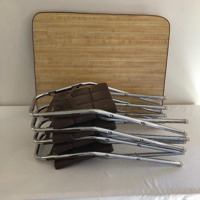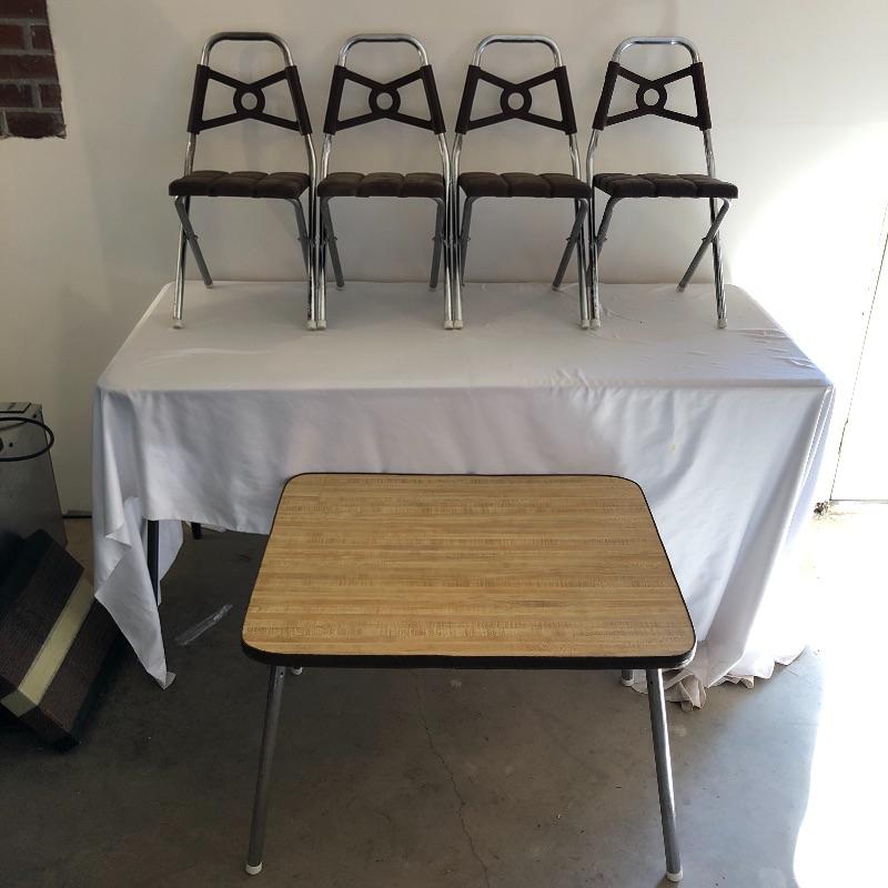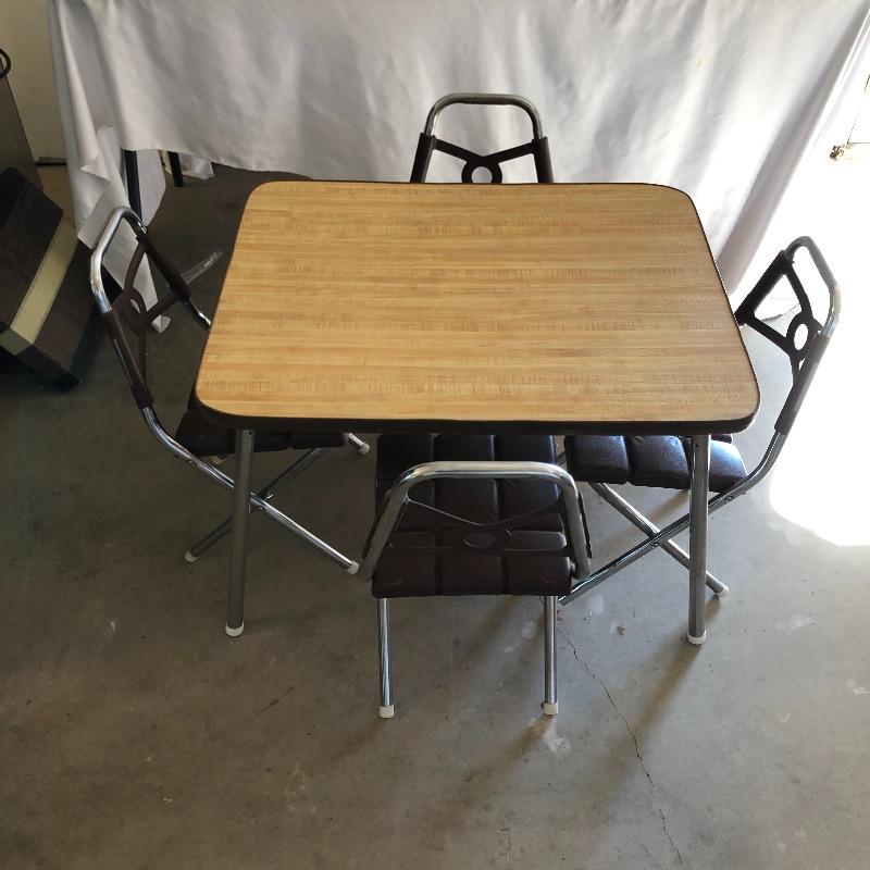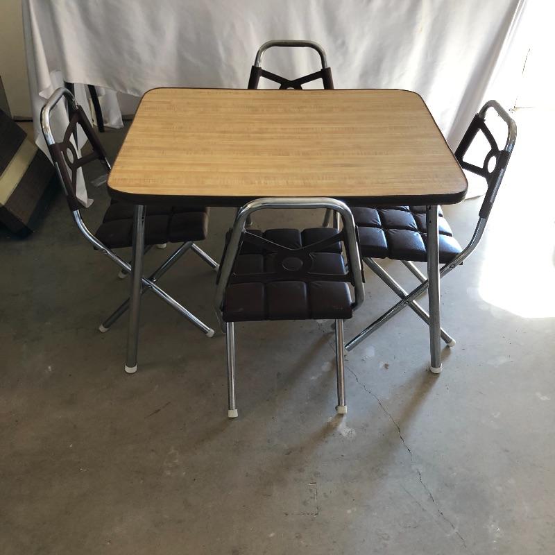 A great table for game playing or teatime for your little ones. This lot includes four folding chair and a folding table sized for your little ones. Table measures 23.5” x 29.5” x 20.5”. Seats and backs of the chairs are plastic. All pieces are sturdy but cannot guarantee they meet standards today for kids chairs and tables.