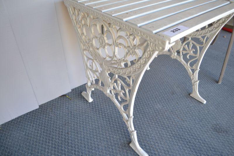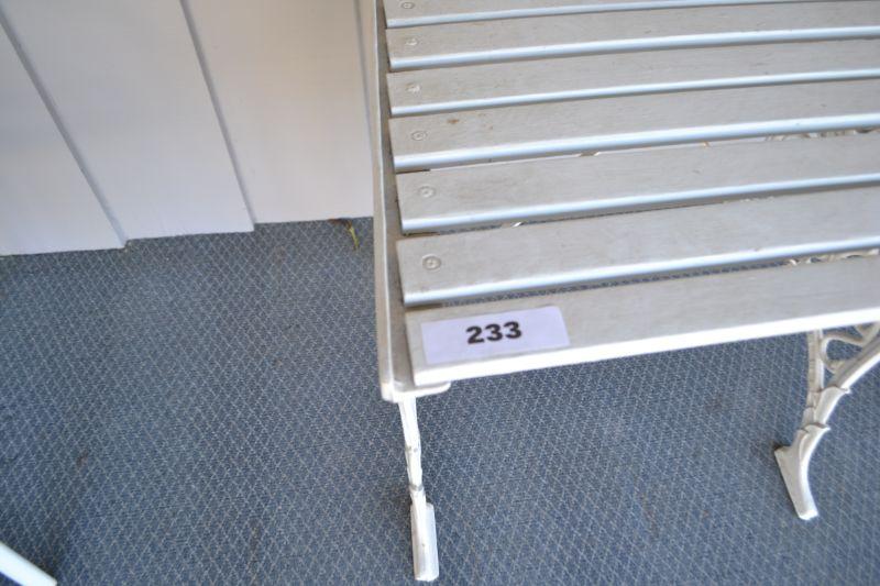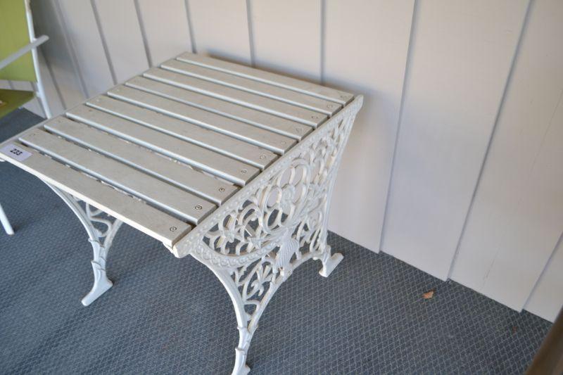 LOT 232. VINTAGE METAL AND WOOD SLAT SIDE TABLE