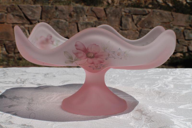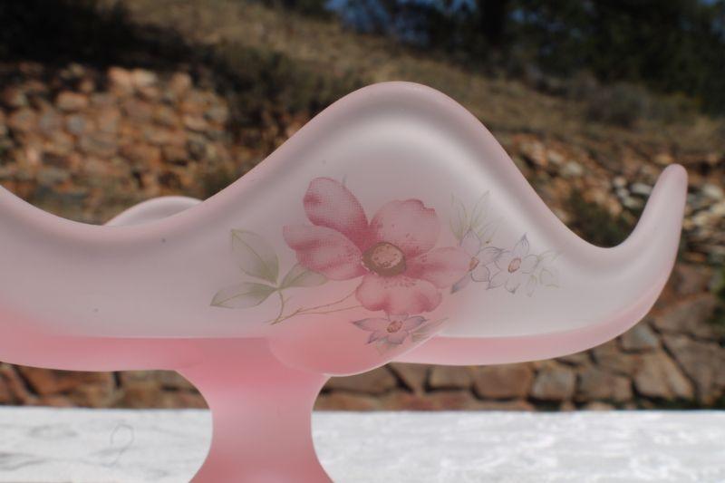 Lot 2-326: Vintage VIKINGâ„¢ Pink Glass Hand Painted Candy Dish