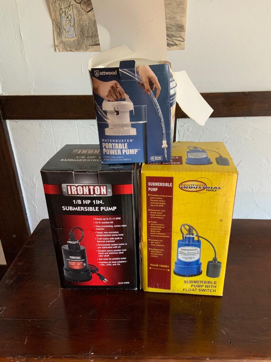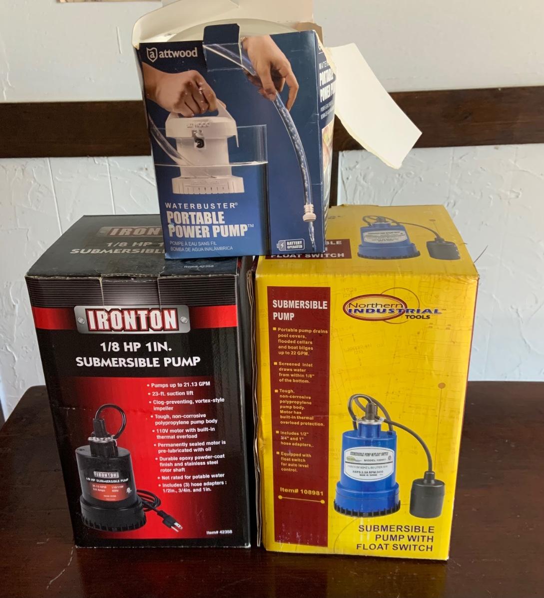 Lot: 232G: Submersible Pumps and Portable Pump in Orignial Boxes
