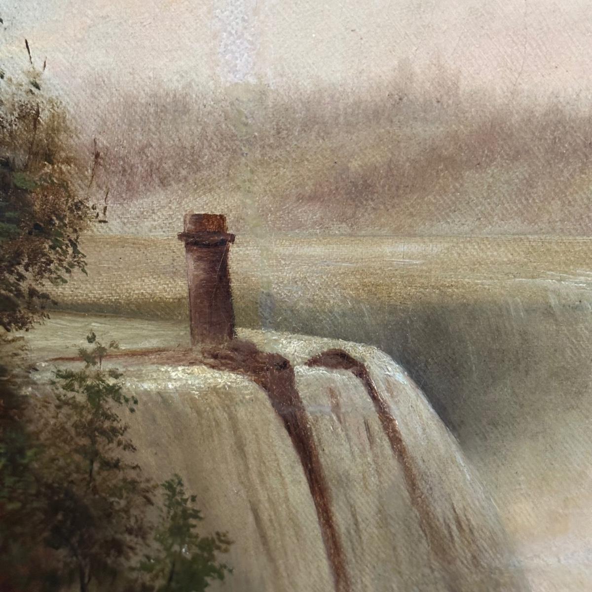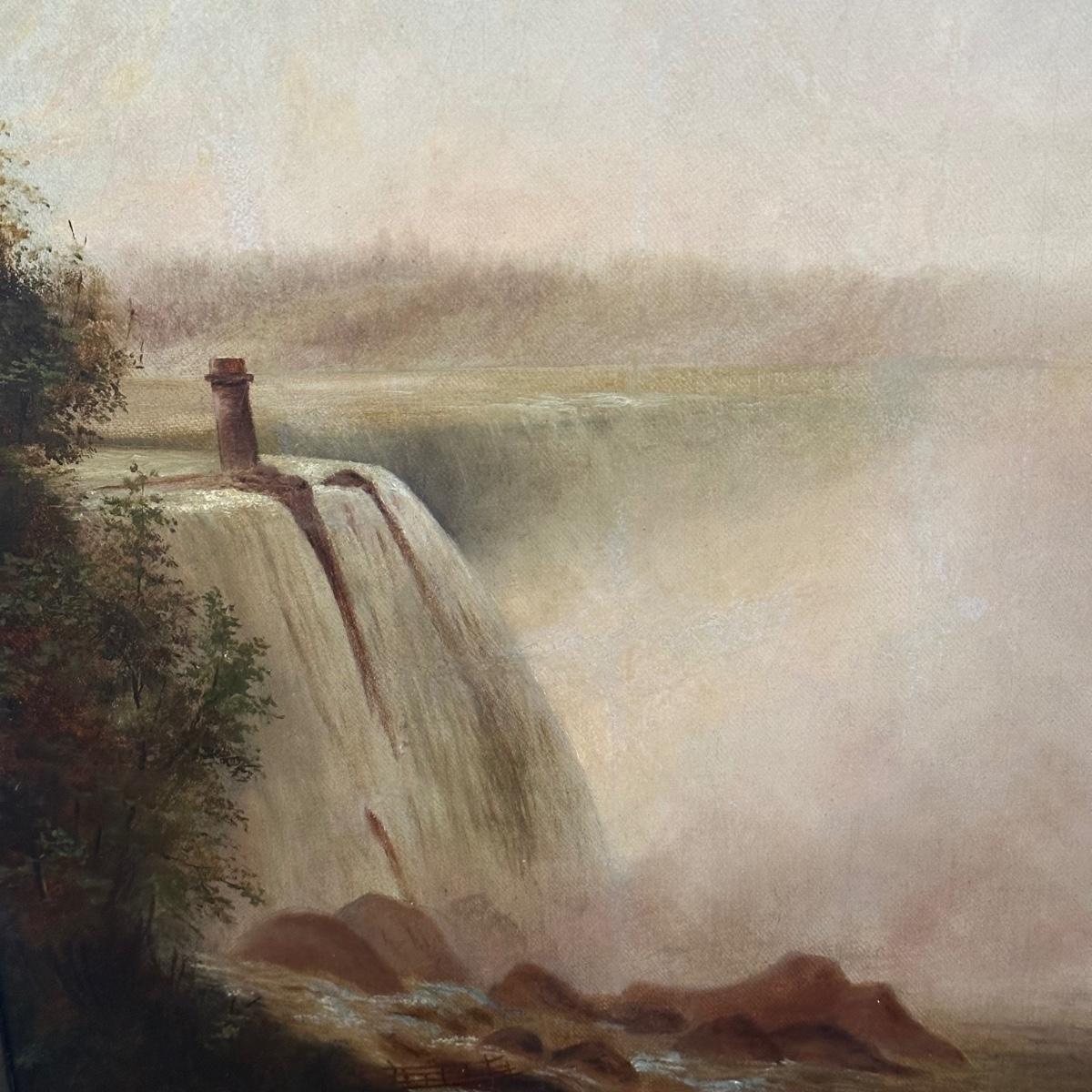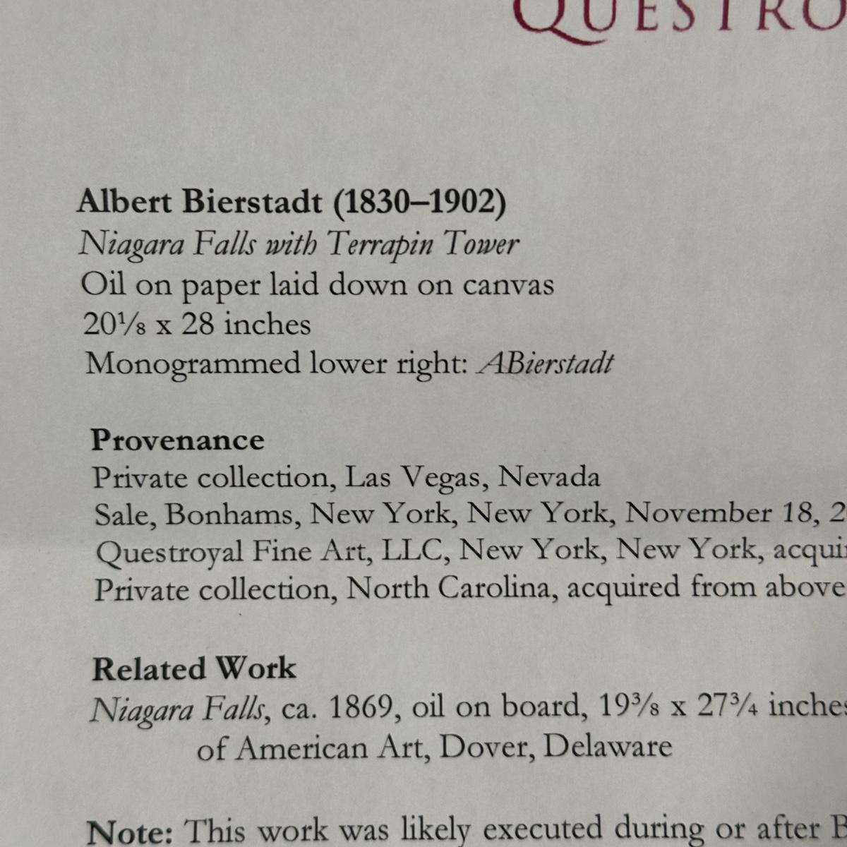 LOT 232X: Niagara Falls with Terrapin Tower Oil On Paper Laid Down On Canvas by Albert Bierstadt