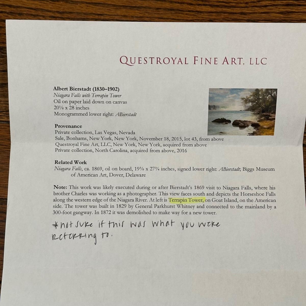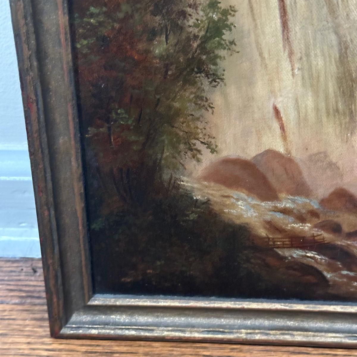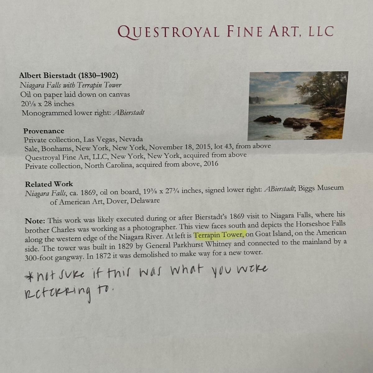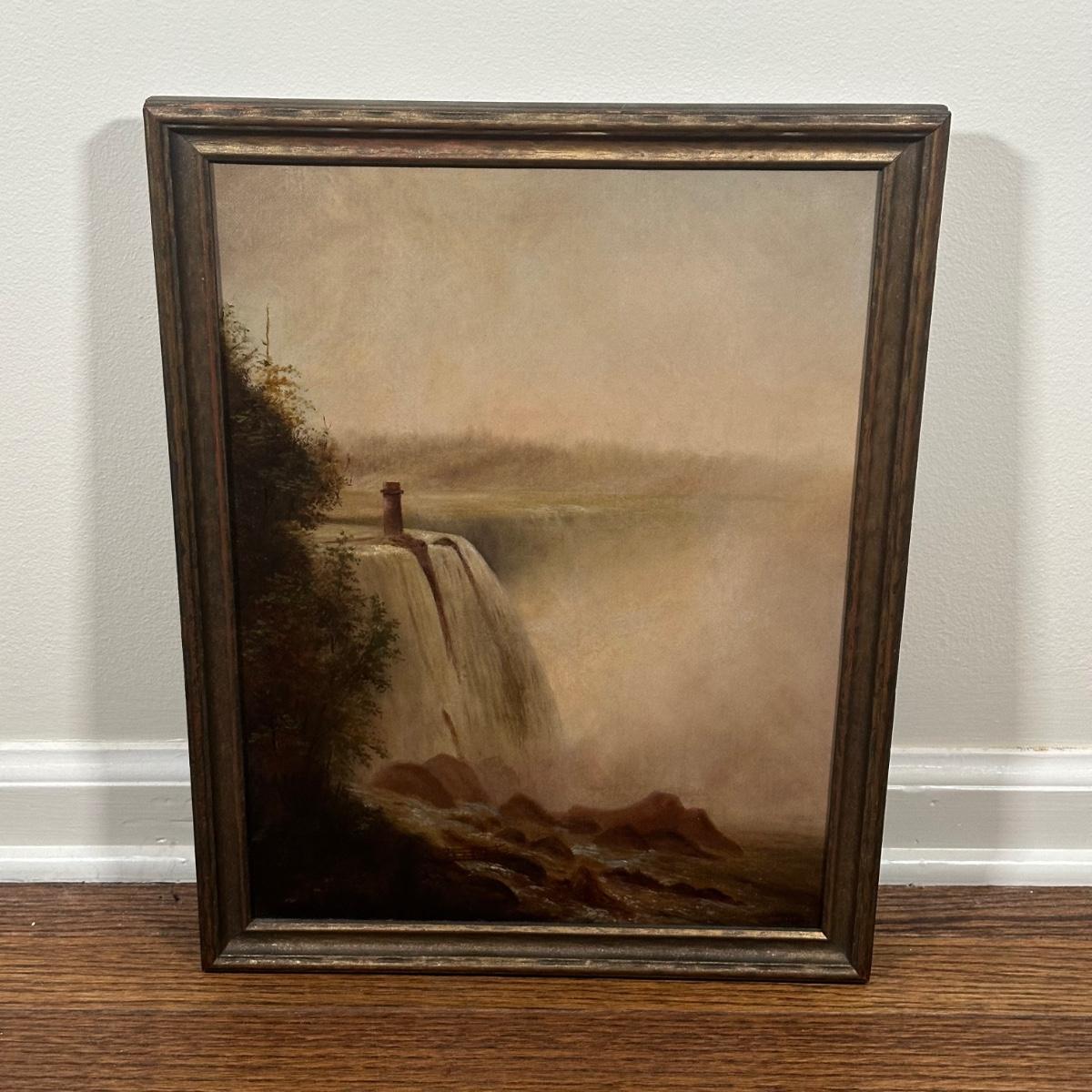 LOT 232X: Niagara Falls with Terrapin Tower Oil On Paper Laid Down On Canvas by Albert Bierstadt