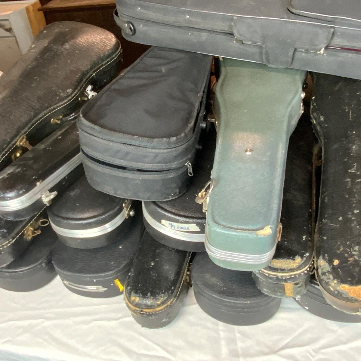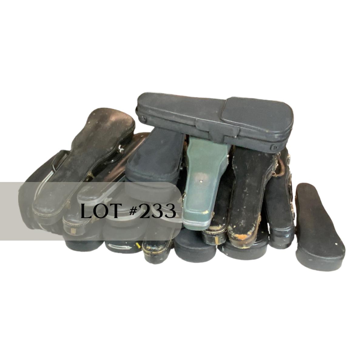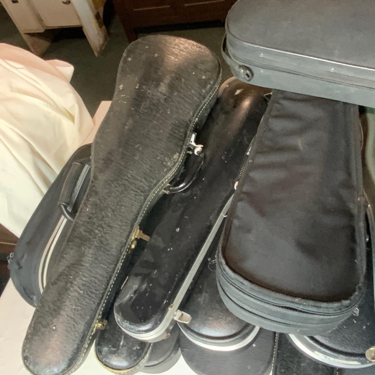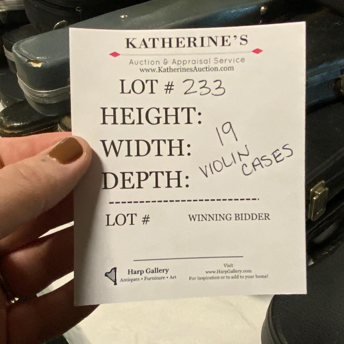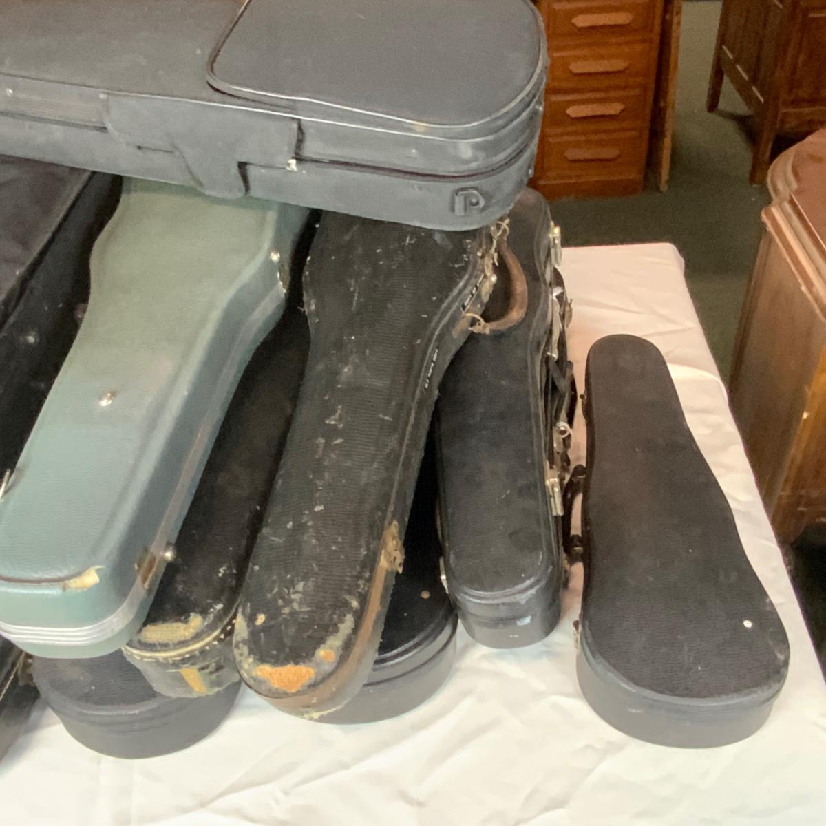 19. Empty violin cases, junior size and larger, various ages and styles. //::\\ Please see photos for details and condition. No attempt has been made to hide any imperfections. All items listed in this auction are warehouse items, and need to be cleaned. A majority of the items need restoration as well. All items are sold AS IS and WITHOUT GUARANTEE. If you are uncertain about an item, DO NOT BID. Due to the nature of this online auction in-person inspection is HIGHLY recommended. All Sales are FINAL. Pick Up Times are FIRM. Please confirm with your own schedule that you can pick up in the scheduled times listed in the Terms and Conditions. Any questions please message the auctioneer. DO NOT Contact The Harp Gallery.