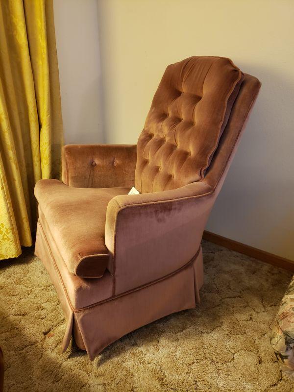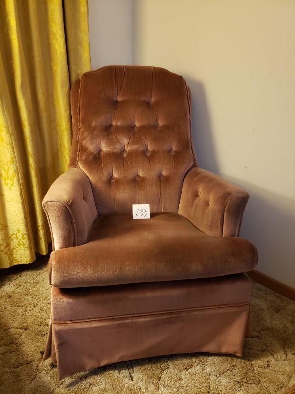 Lot 233: Vintage Rose Color High Back Swivel Rocker