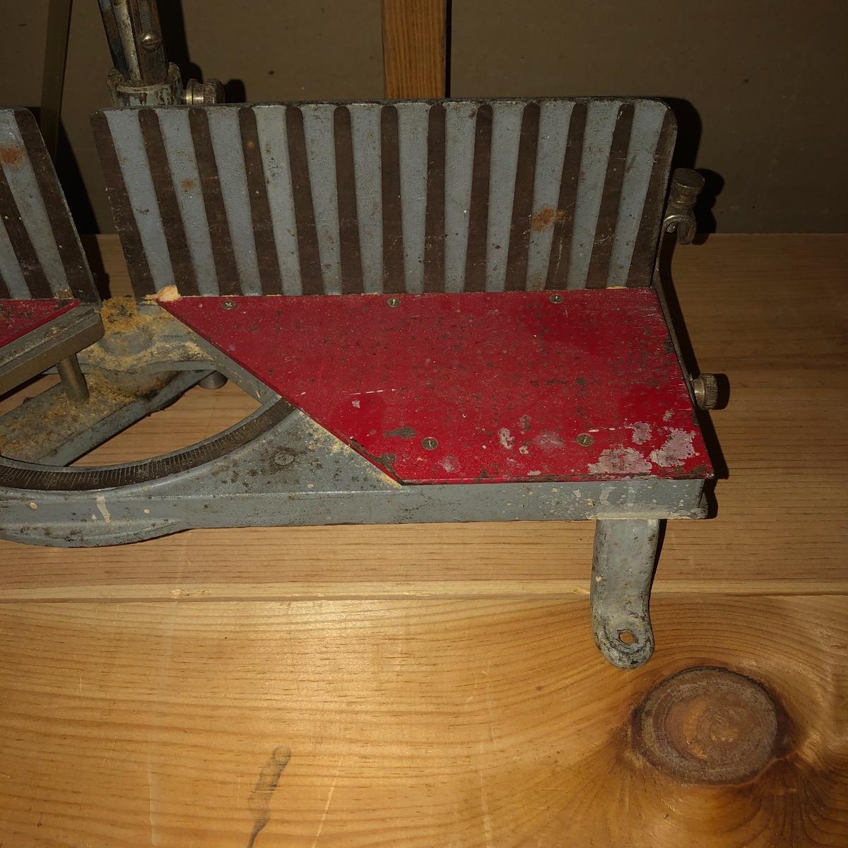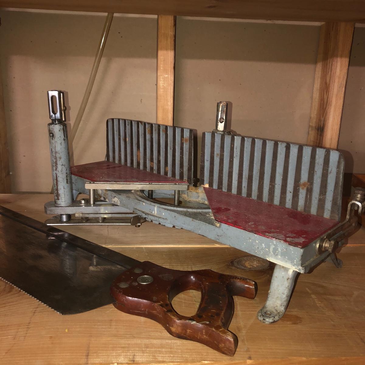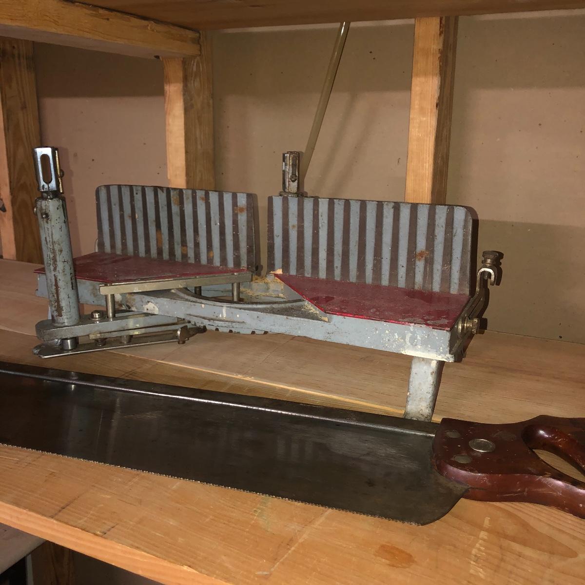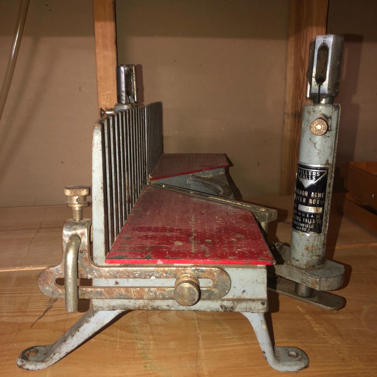 This Miller Falls Miter Box is paired with a 26 inch blade saw. Both look used but in good condition, the miter box is just under 22 inches long and needs to be wiped down.