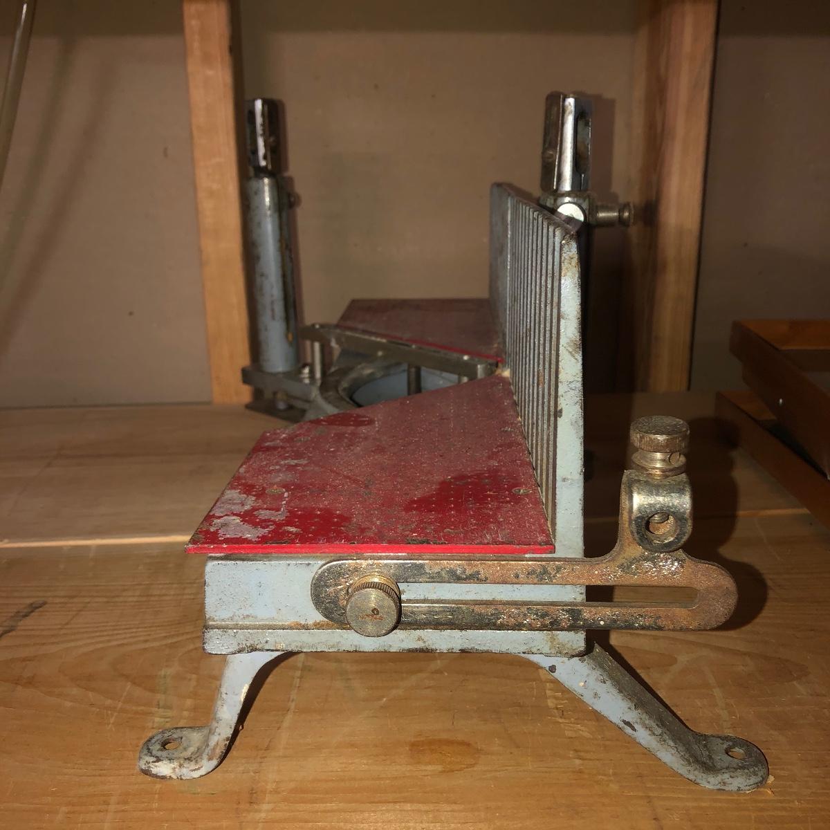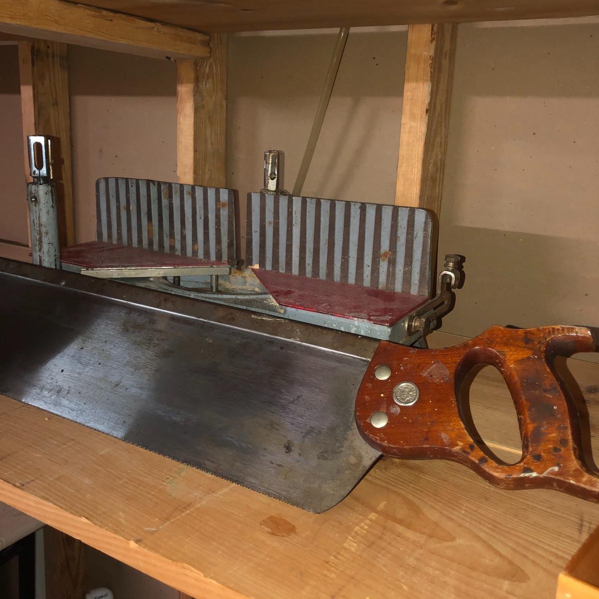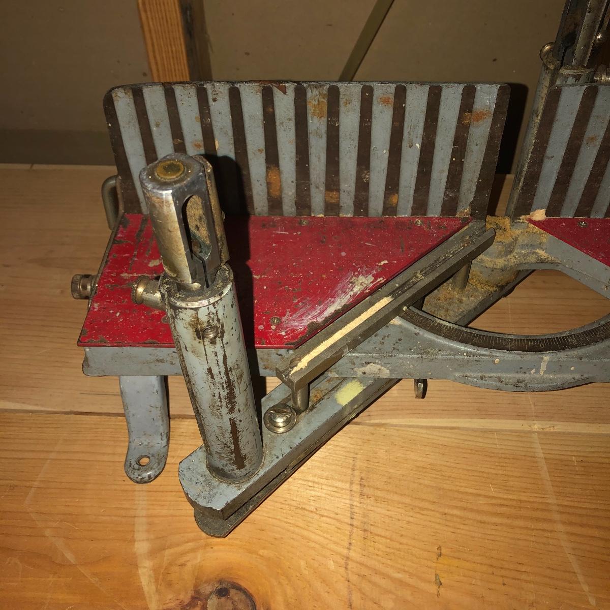 This Miller Falls Miter Box is paired with a 26 inch blade saw. Both look used but in good condition, the miter box is just under 22 inches long and needs to be wiped down.