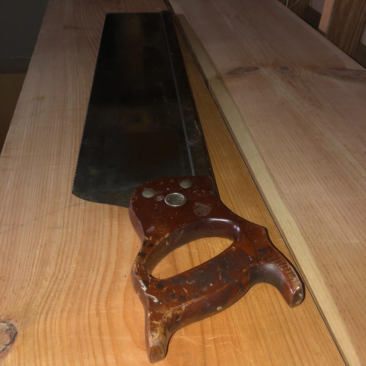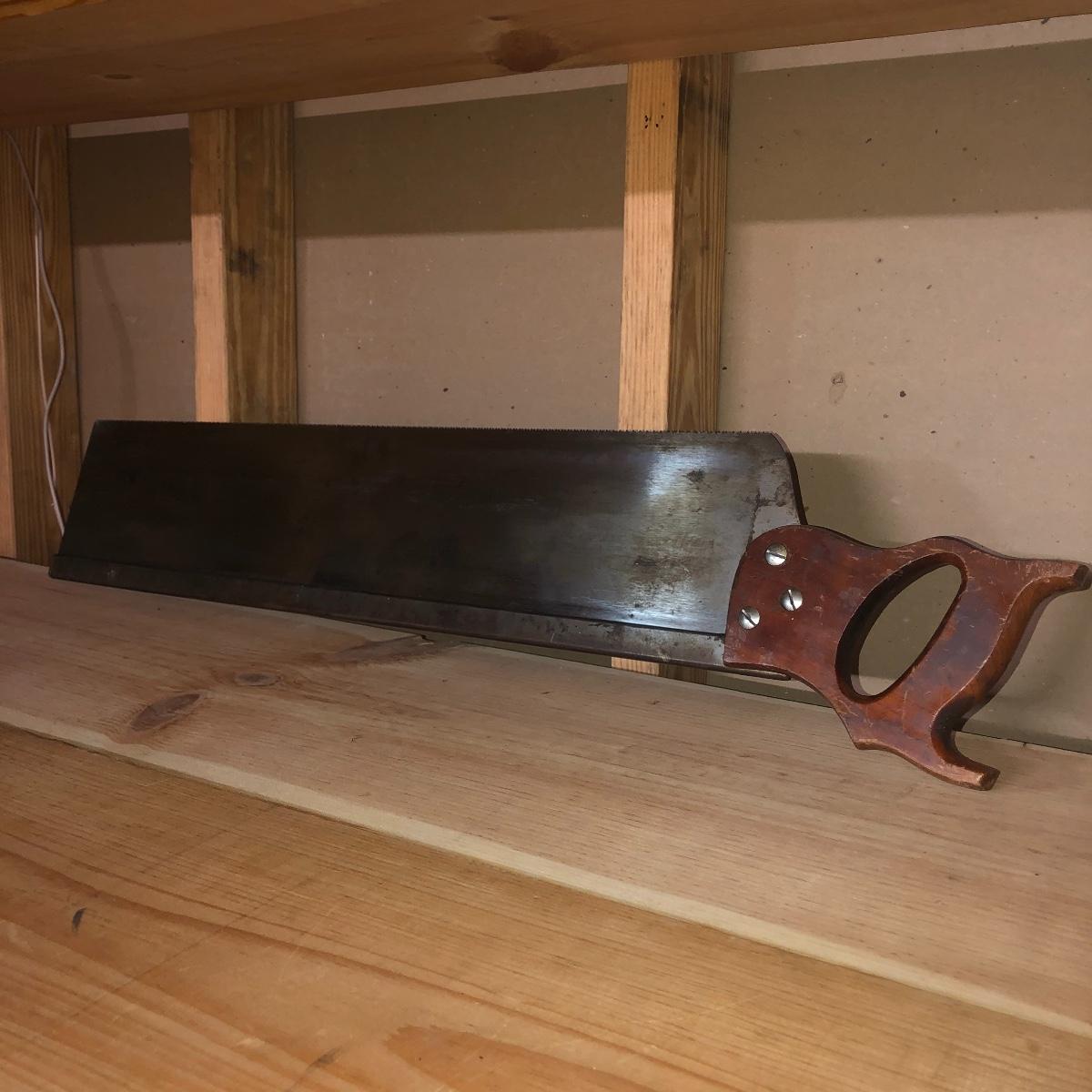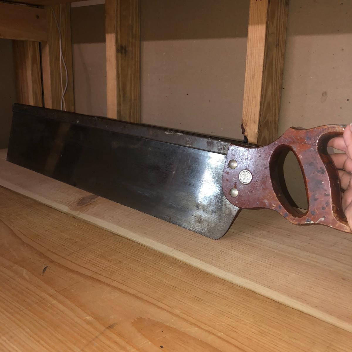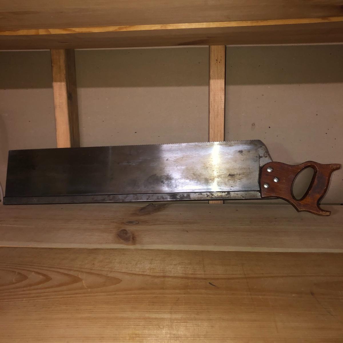 This Miller Falls Miter Box is paired with a 26 inch blade saw. Both look used but in good condition, the miter box is just under 22 inches long and needs to be wiped down.