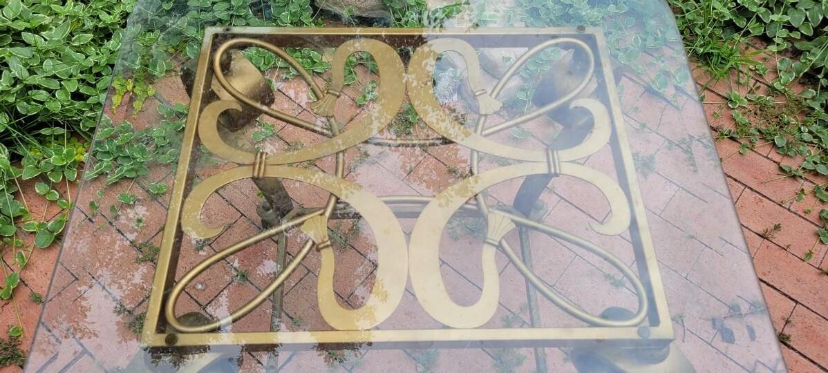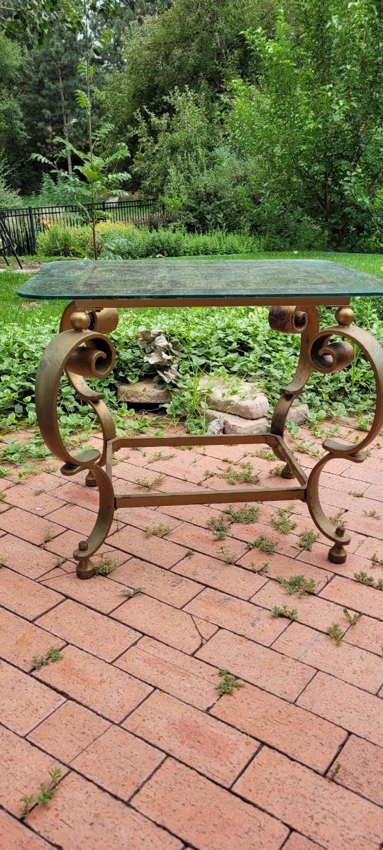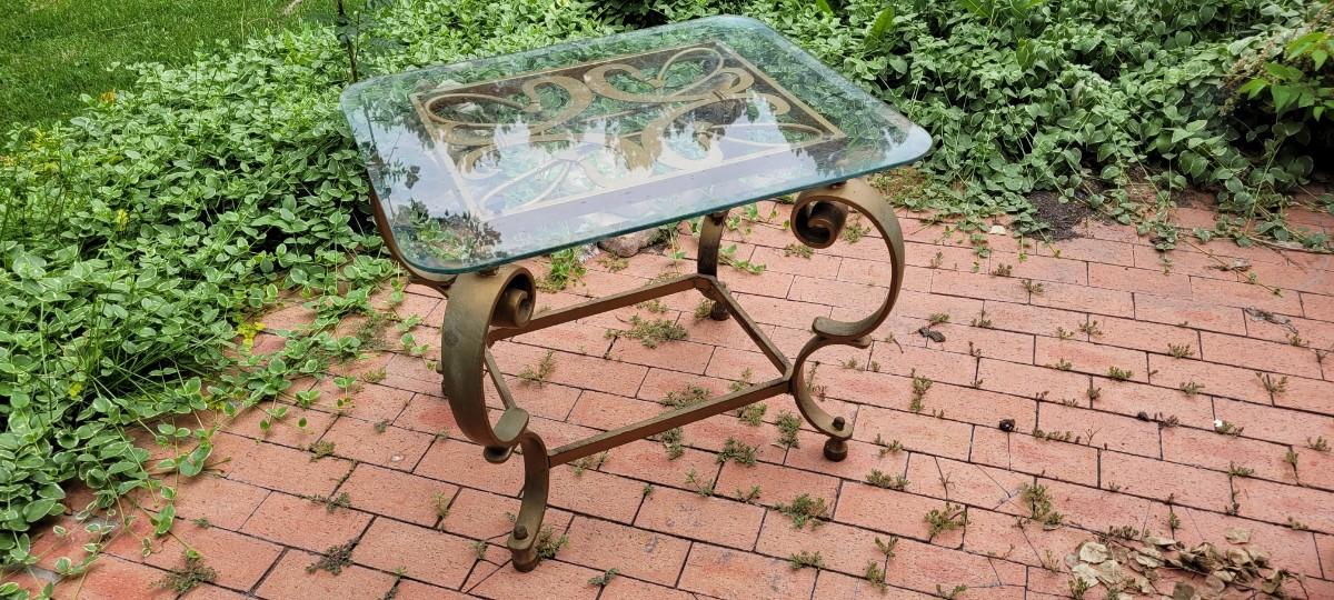 Lot 233: Vintage HEAVY Side Table with Glass Top