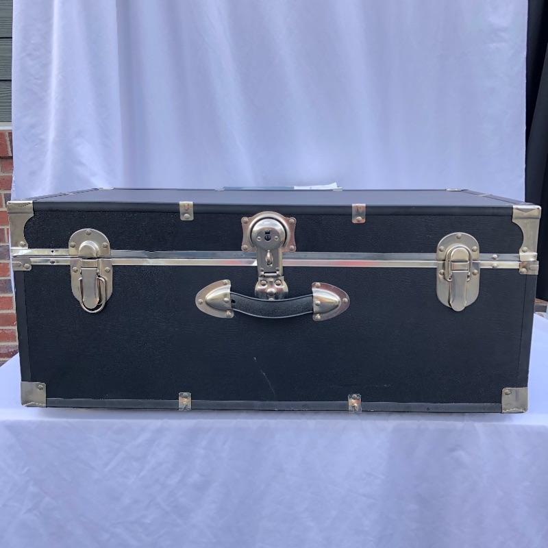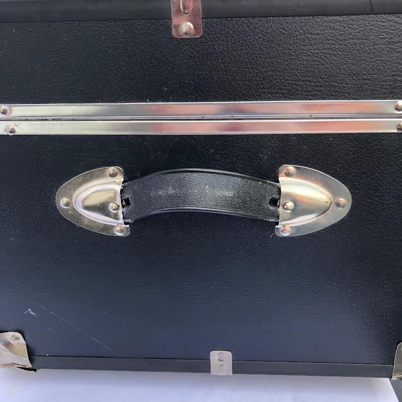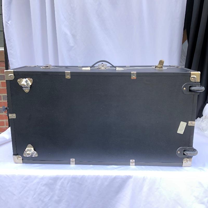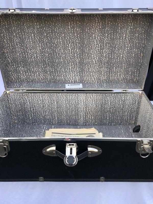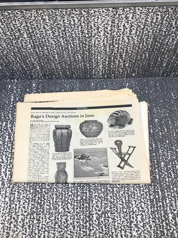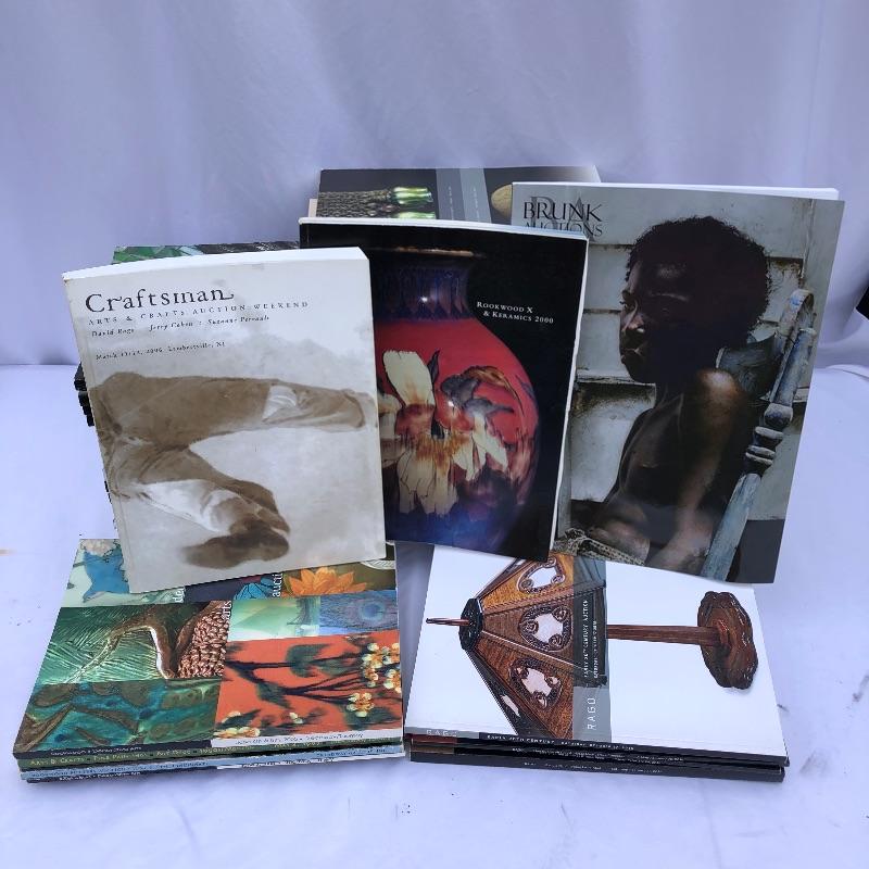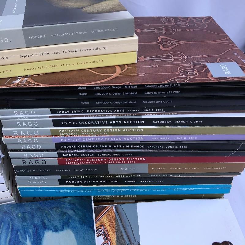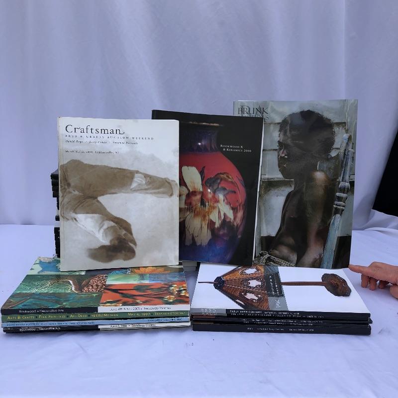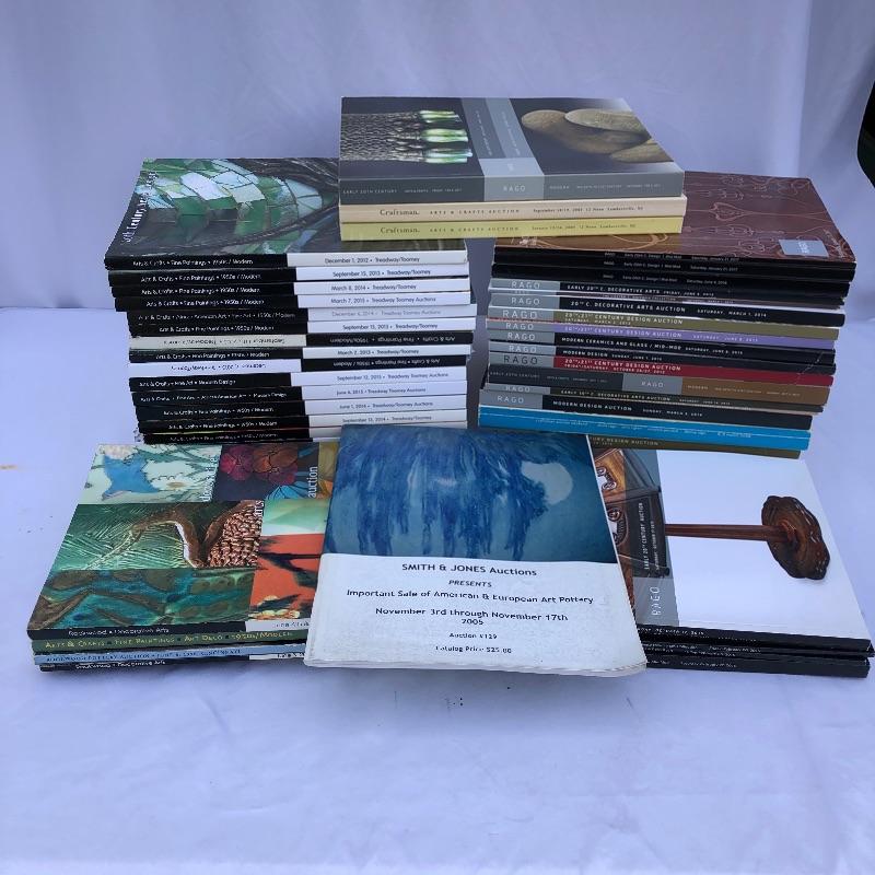 If you are fascinated by Auctions these catalogs by Rookwood, 3 pieces, Brunk, 1 piece, Smith and Jones Auctions, 1 piece, Rago, 23 pieces, Craftsman, 3 pieces and Treadway/Toomey, 23 pieces, is definitely for you. It comes with a black trunk with metal detailing and has wheels on one end and a handle on the other. Minor damages to some metal parts see photos.