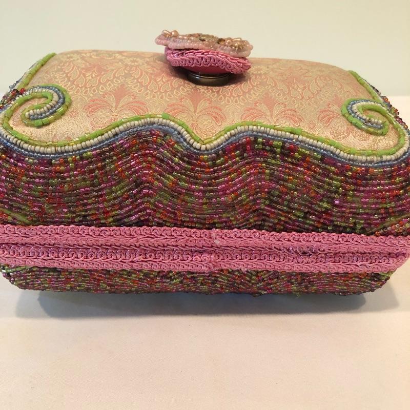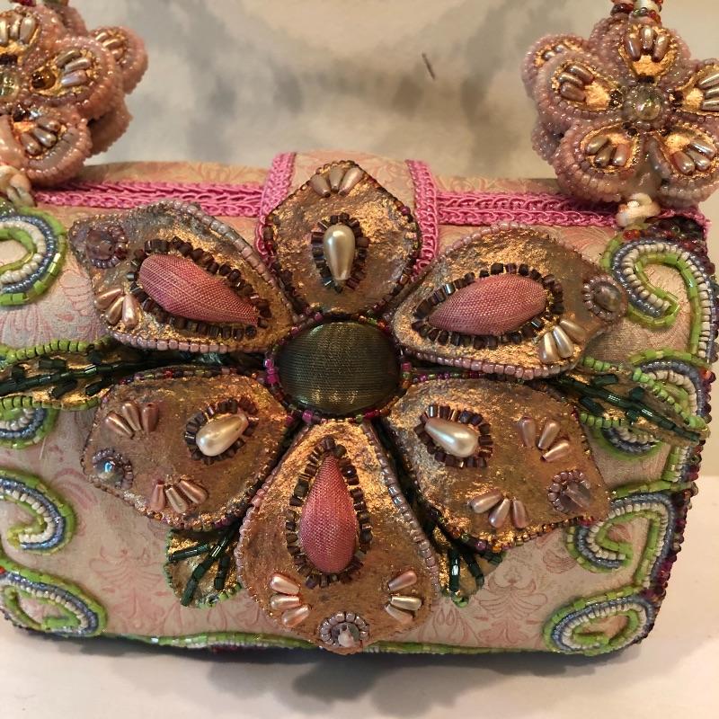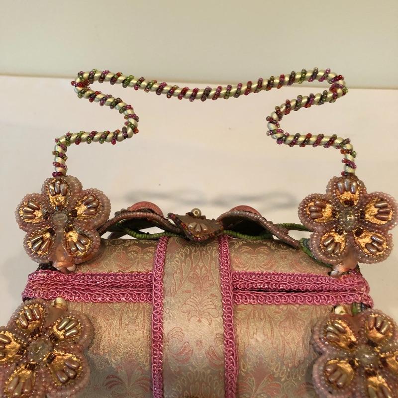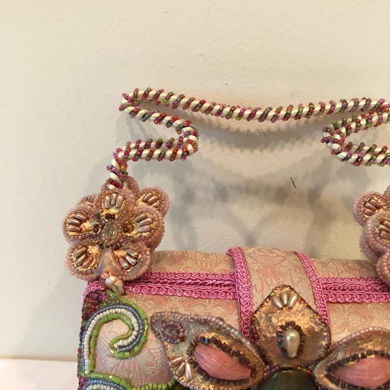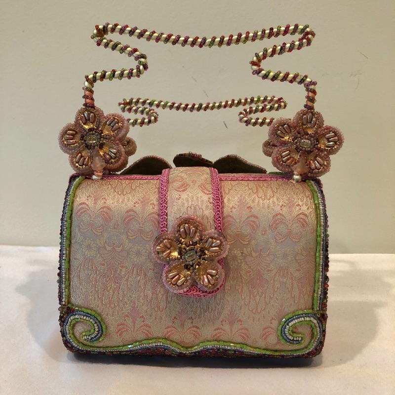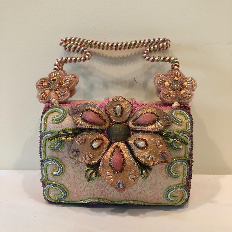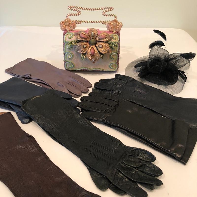 This Mary Frances beaded purse is absolutely gorgeous; it measures 7” x 3” x 5” and will finish off your outfit with style! The small fascinate that has a built-in hair clip for attachment. Also included are a handful of leather gloves in black, blue, purple and brown. Shipping Available.