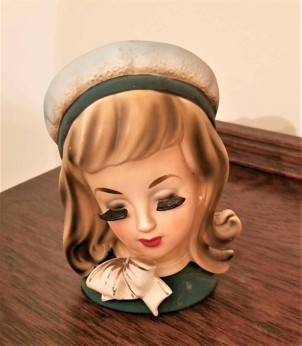 Ceramic 1960's lady head vase - very collectible. Marked "Japan." Good vintage condition.