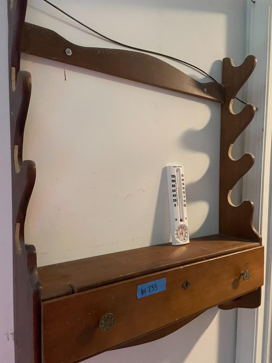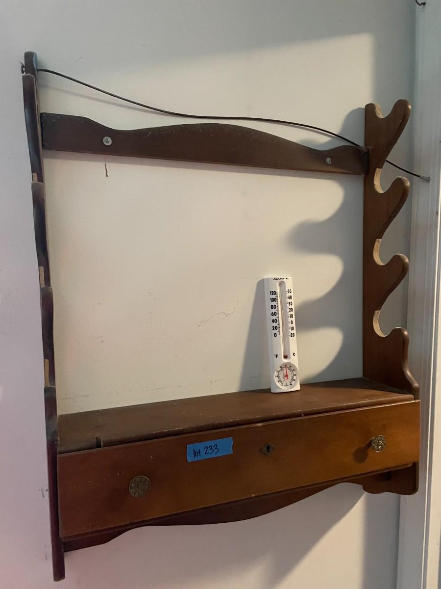 lot 233- hanging wooden wall shelf (must remove yourself), acurite