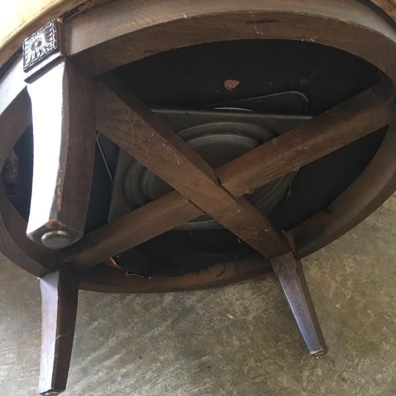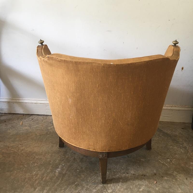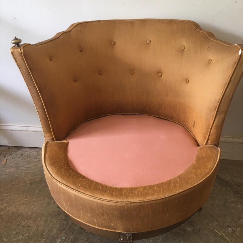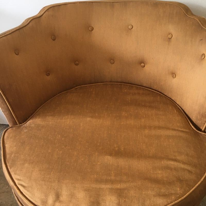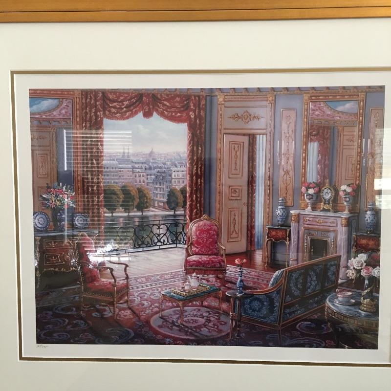 MCM swivel chair and framed and matted artwork lot. MCM swivel chair is an excellent chair that could use some refurbishment or go for the shabby chic look and leave it as it is, has two unusual knobs on the chair back. Chair measures 29” x 29” x27” with a seat height of 16.5”. Framed, matted and numbered artwork is so vibrant it seems like you are in the room. Frame has small chip on edge and measures 26” x 31”.