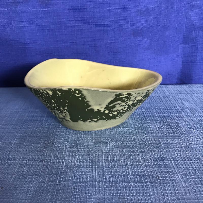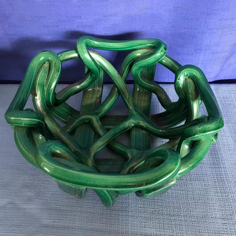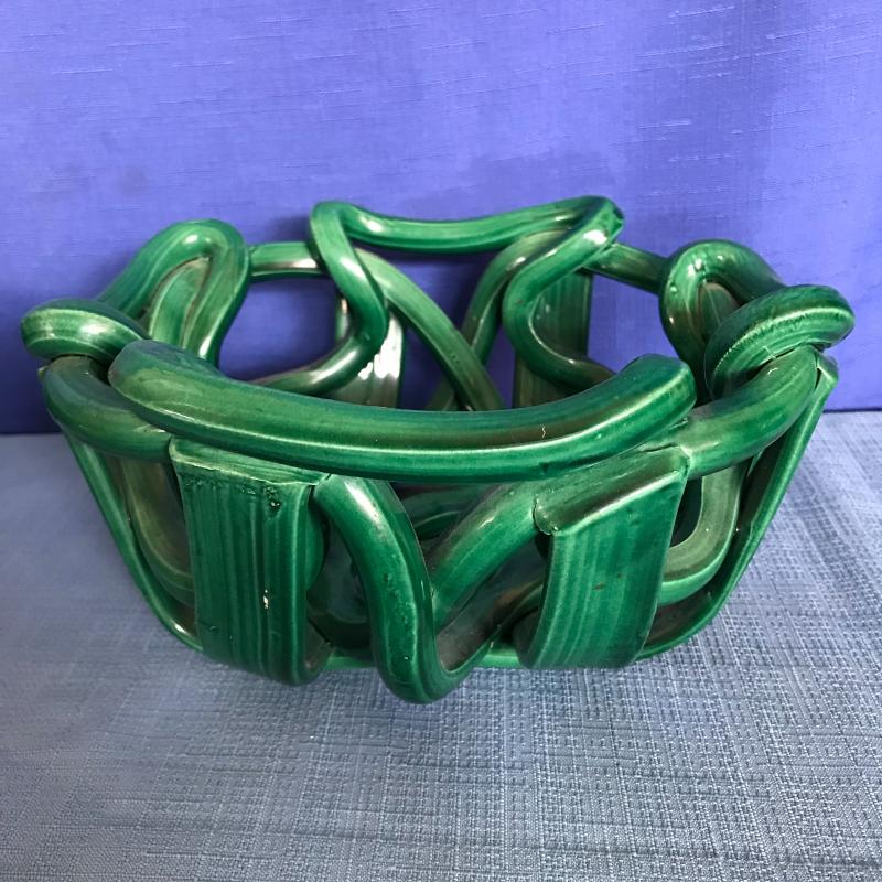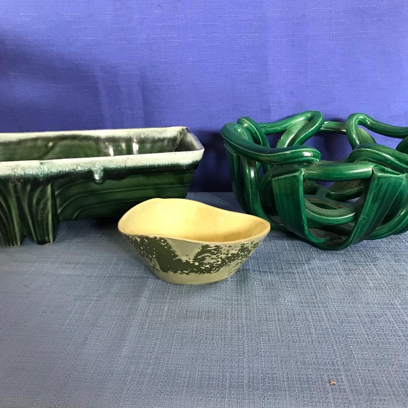 Lot includes three vintage green pieces. Woven looking piece is approx. 9” x 4”. Small bowl is by Horton. See pics. No shipping available. Shipping or local pickup in Maggie Valley, NC.