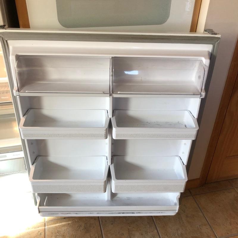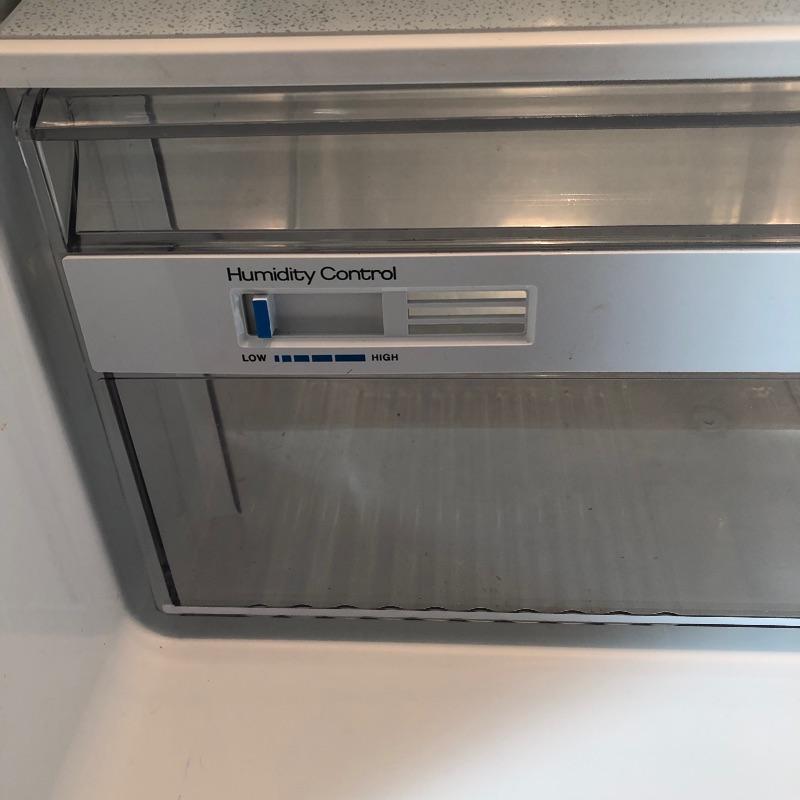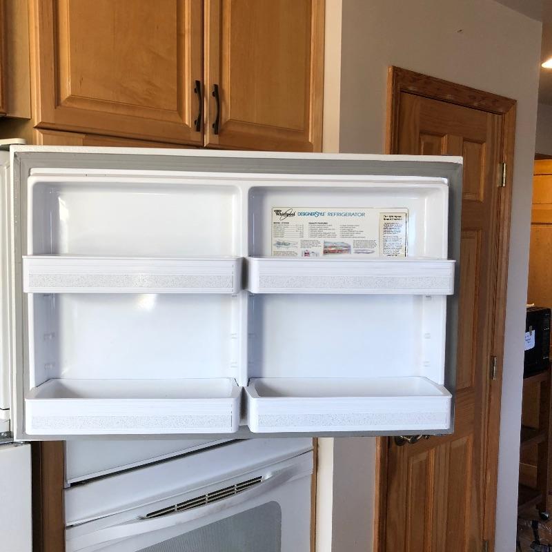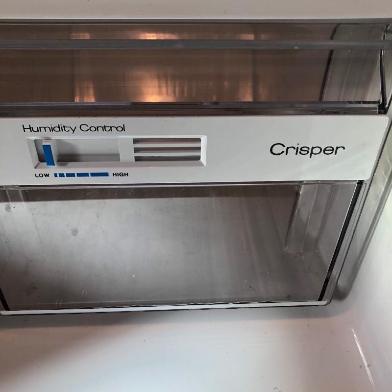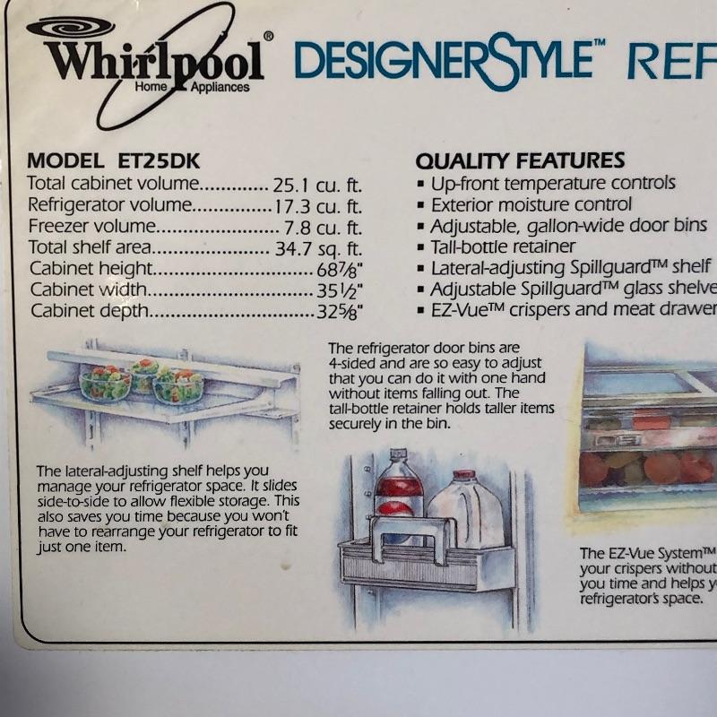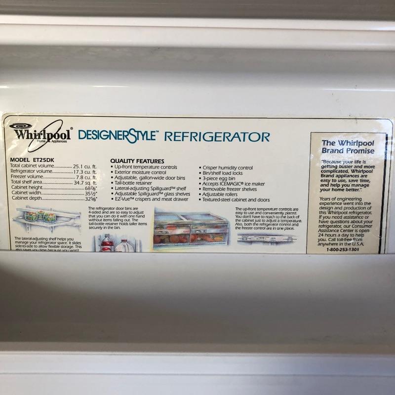 This nice and clean Whirlpool refrigerator has an automatic ice maker that has not been tested but we are told by the estate owner that it works. It provides a ton of space and comes with multiple humidity control drawers and more, see images.