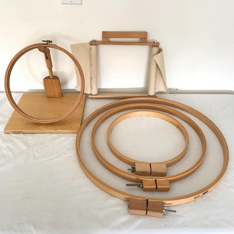 Lot 233 - Wooden Embroidery Hoops and More