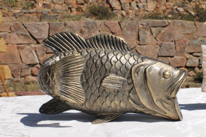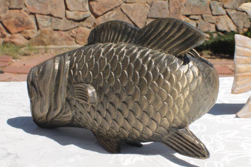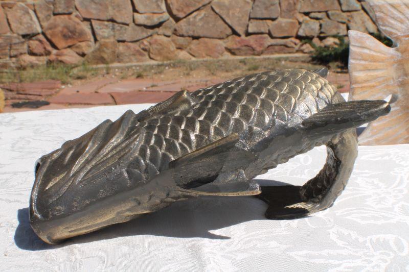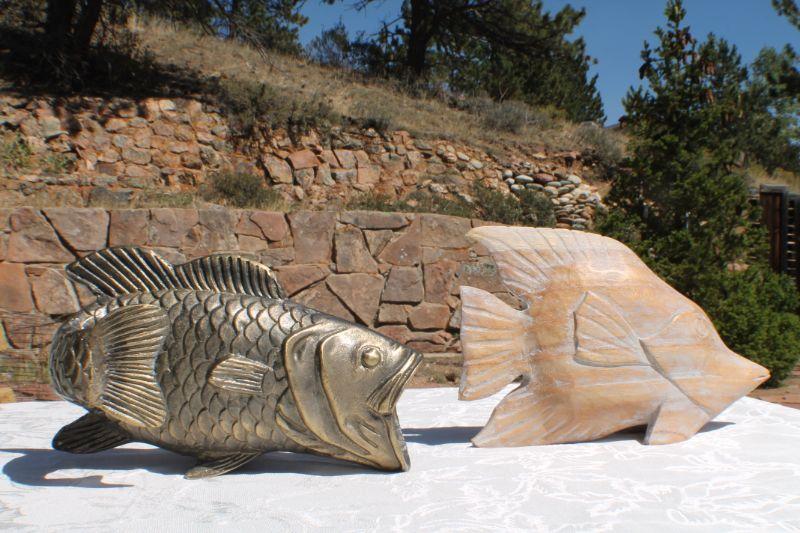 Lot 2-330: (2) Vintage Fish Sculptures (One Brass and One Wood)