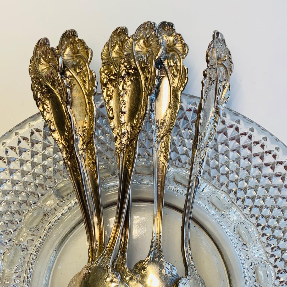Set of six demitasse sterling silver spoons marked on back with the Reed and Barton (eagle R lion) stamp. This set is attributed to 1899. Pre-owned set. Please see all pictures as they are the best representation of the items. The pictures show condition, measurements if taken, and what is included in the lot. Due to the large amount that we photograph and the time frame, we are not always able to take measurements. All items unless noted, are pre-owned and have been used. If you purchased furniture, you must bring help. We do not allow one person to carry large furniture out on their own. Bring help, tools and a truck for the safety of our client’s homes, and your personal safety. Any damages that result to the property including walls, and floors due to moving of the furniture will be charged to the buyer. Company policy. Thank you