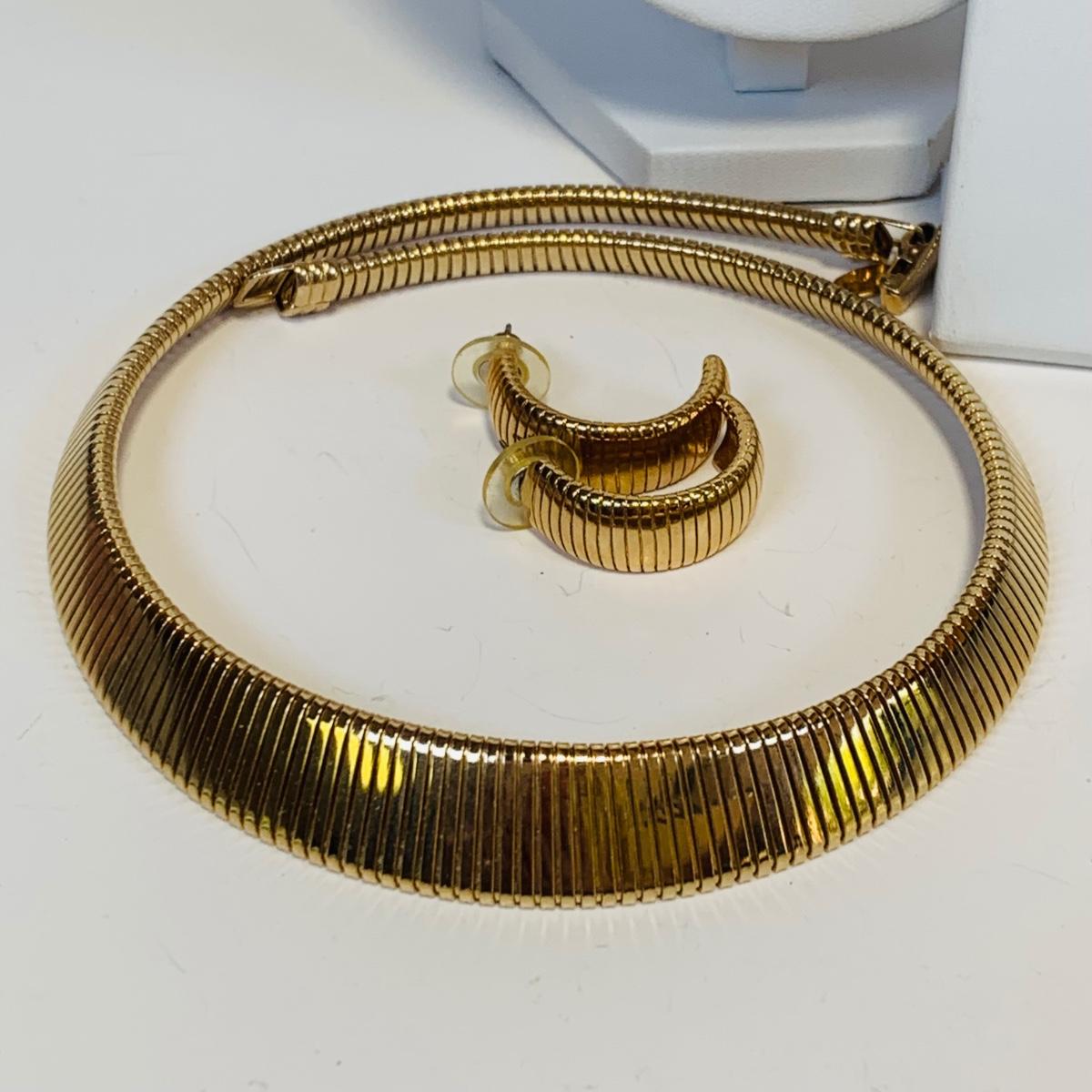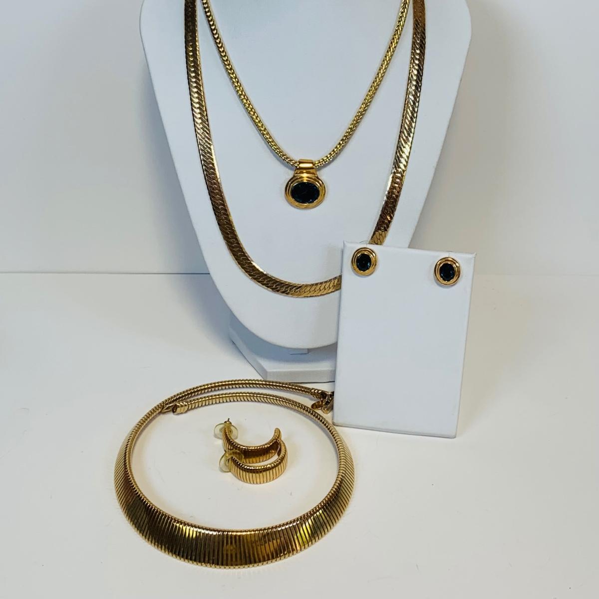 Lot 234: Vintage Park Lane Gold Tone Flex Choker Necklace,16' w/Matching Earrings, Gold Tone Necklace w/Pendant, Matching Earrings & More