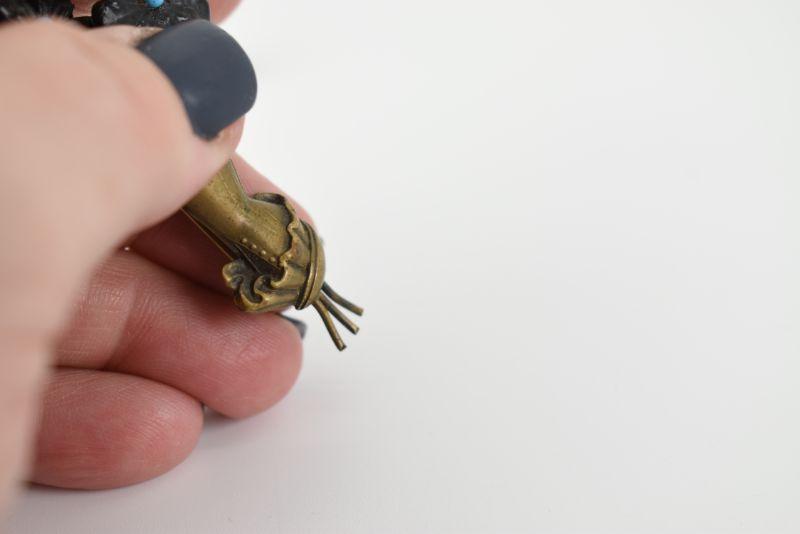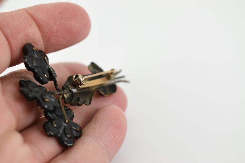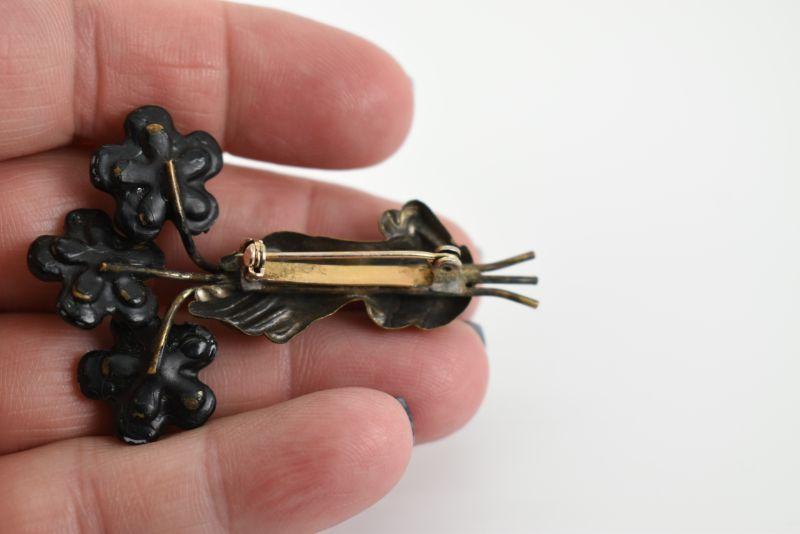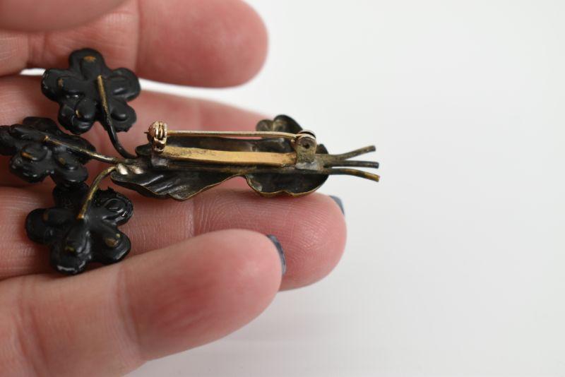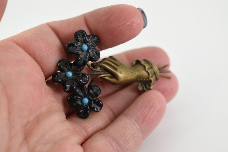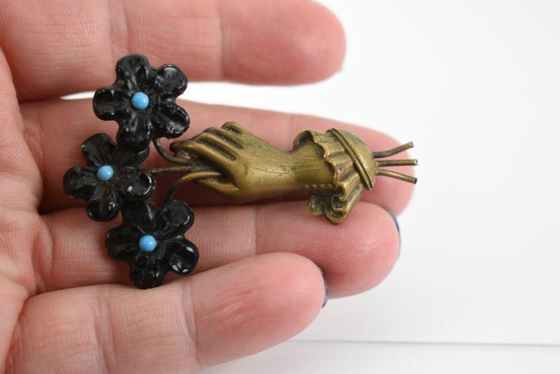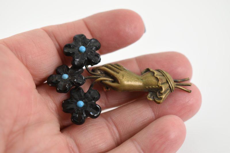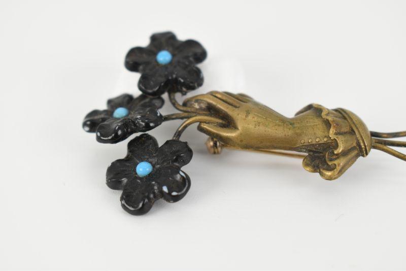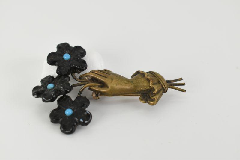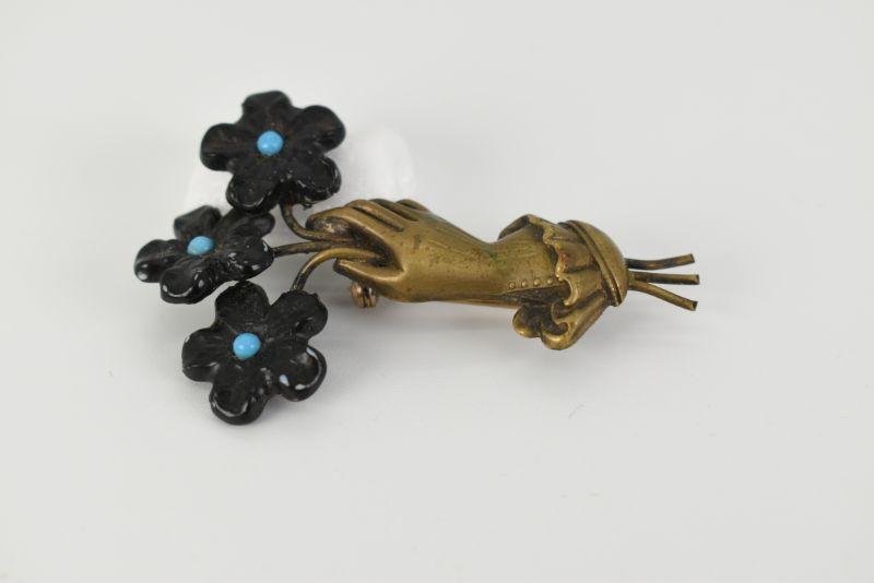 Lot 234-Brass Hand Holding Painted Flowers Brooch