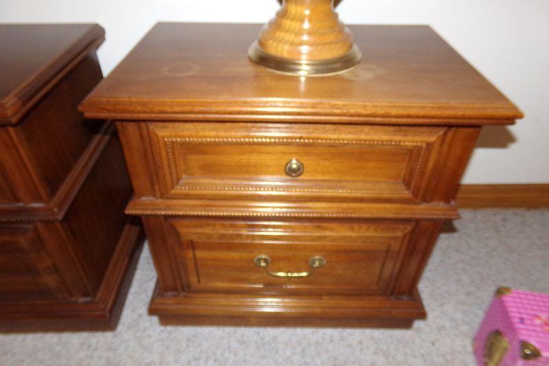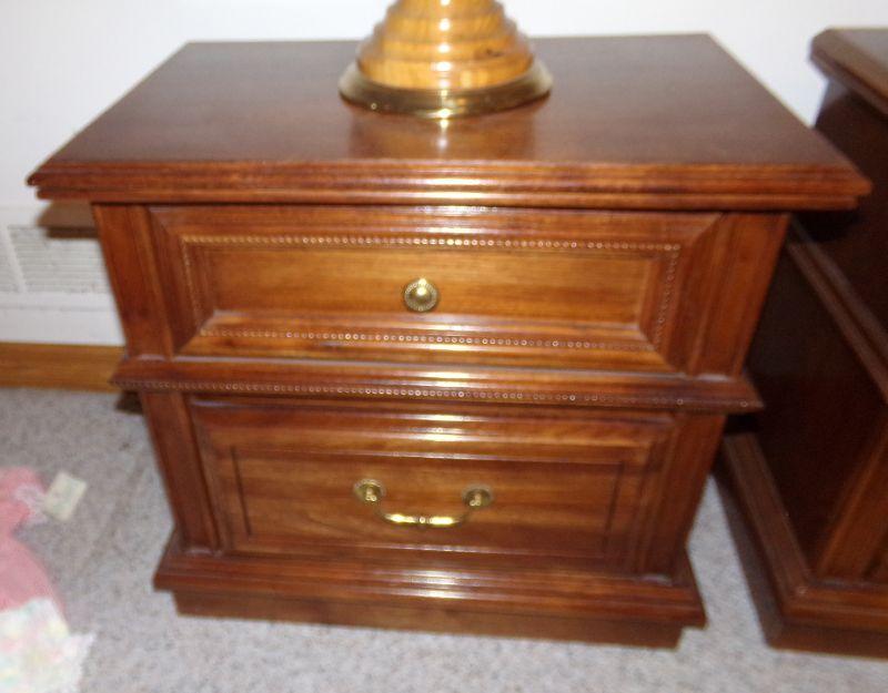 ALTHOUGH THESE NIGHTSTANDS MATCH 1 IS A DARKER TONE THAN THE OTHER. ALSO, ONE HAS A RING FROM A WET CUP ON THE TOP 25" X 16" X 24"