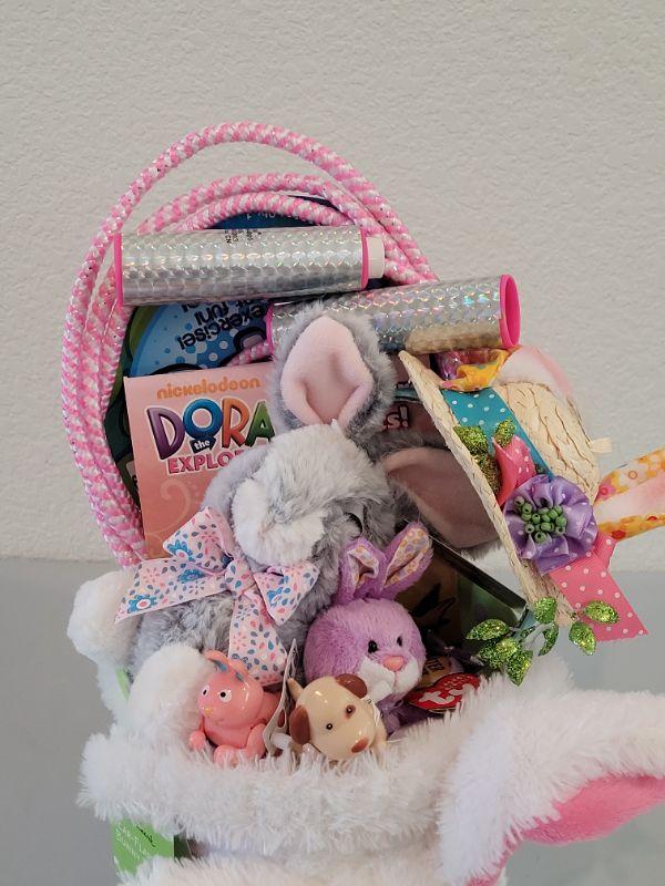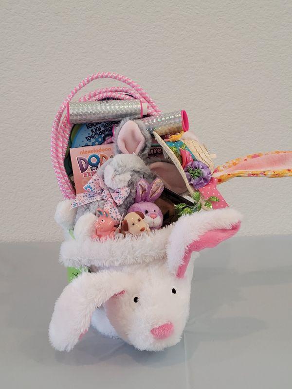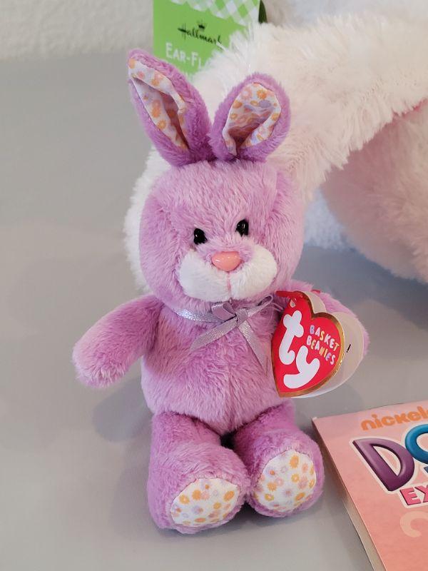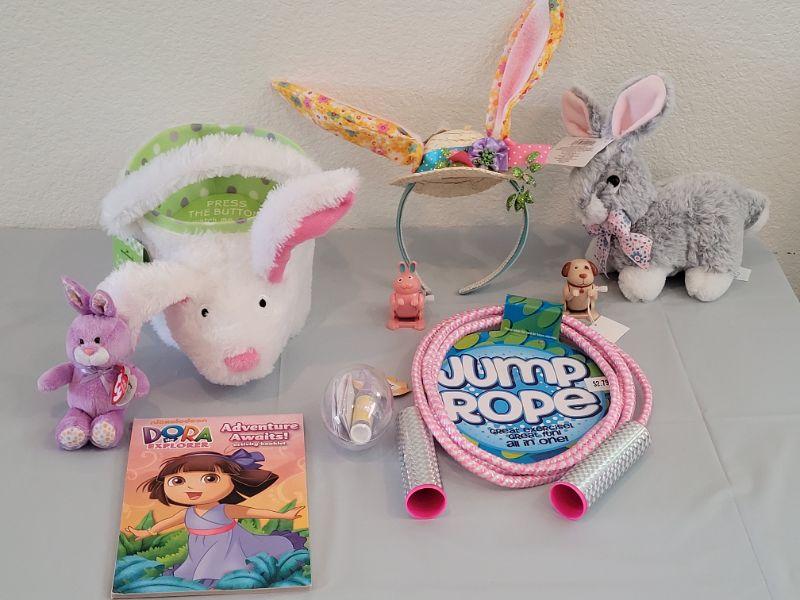 Lot 234: New Flapping Ears and Singing Bunny Basket, Jump Rope, Activity Pad, Bunny Ears Headband, Lip Balm, Wind Up Toys and Ty Beanie Baby Bunny