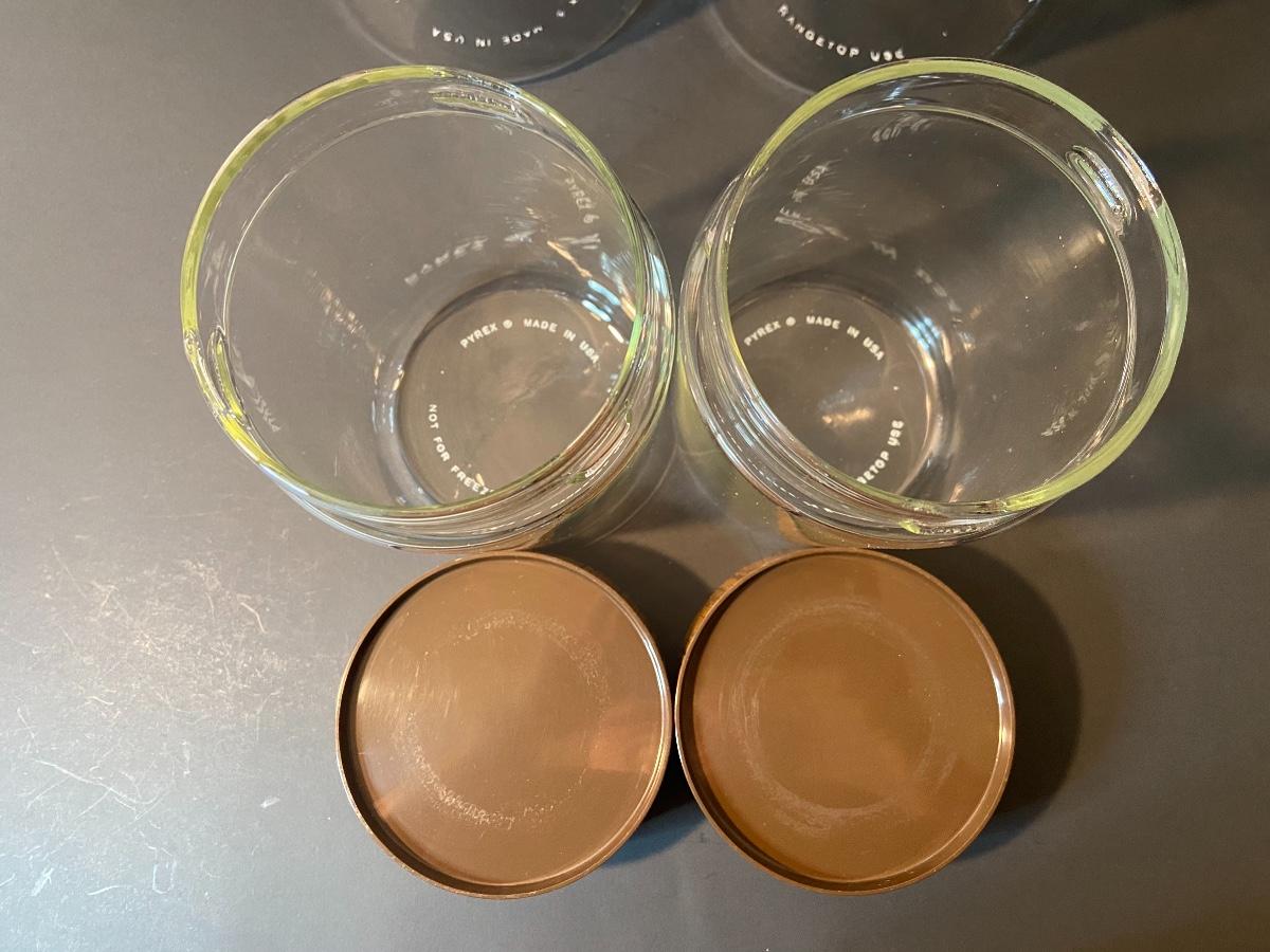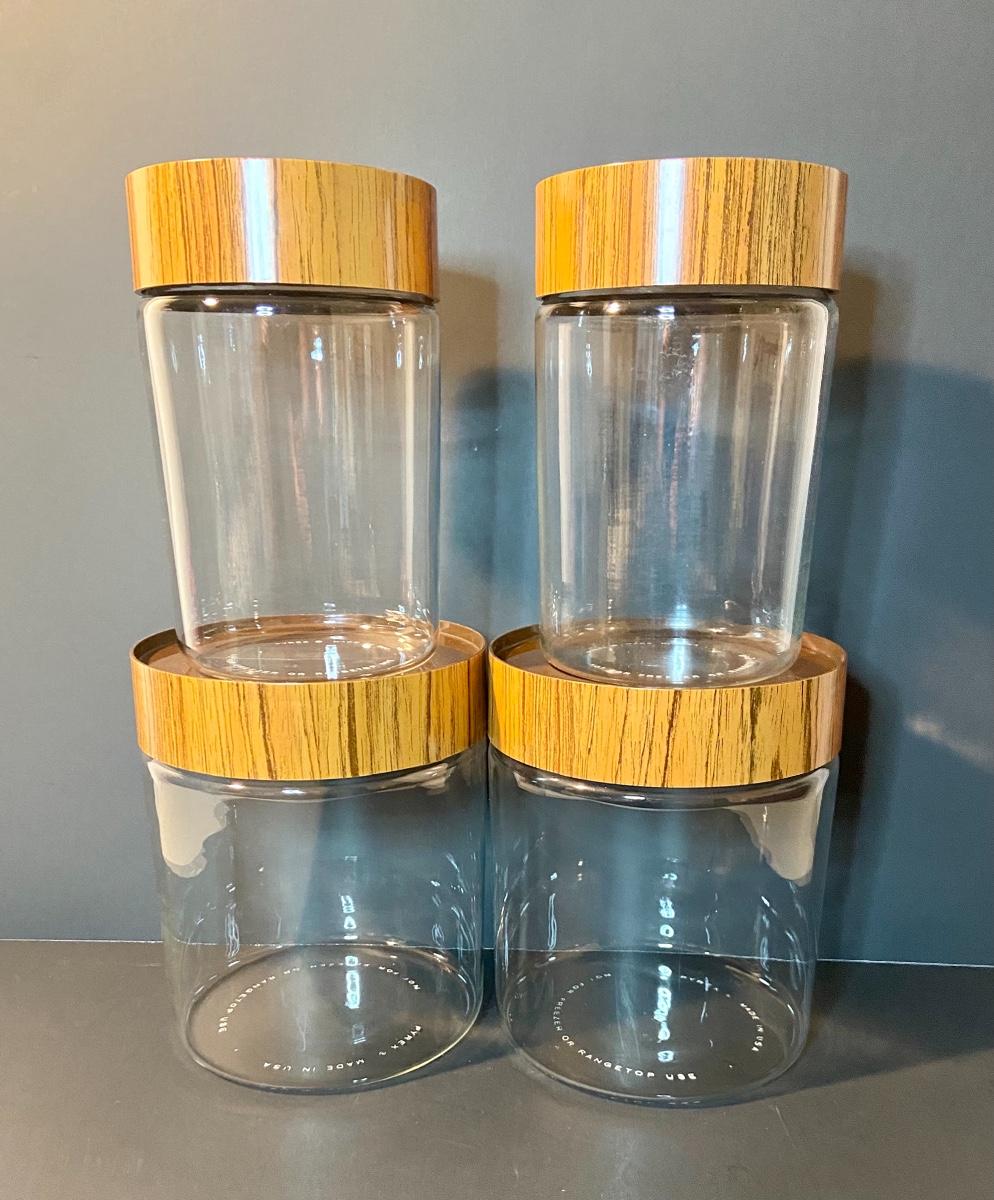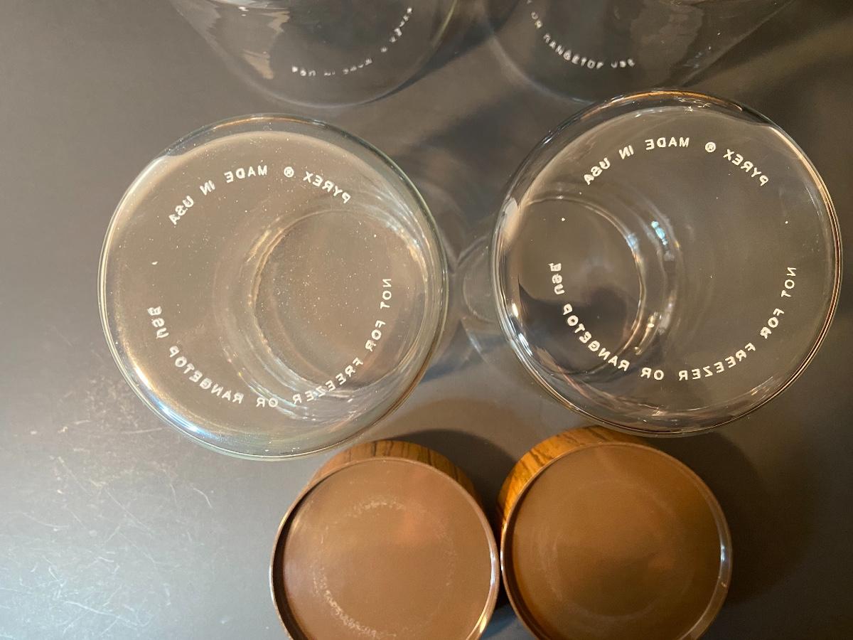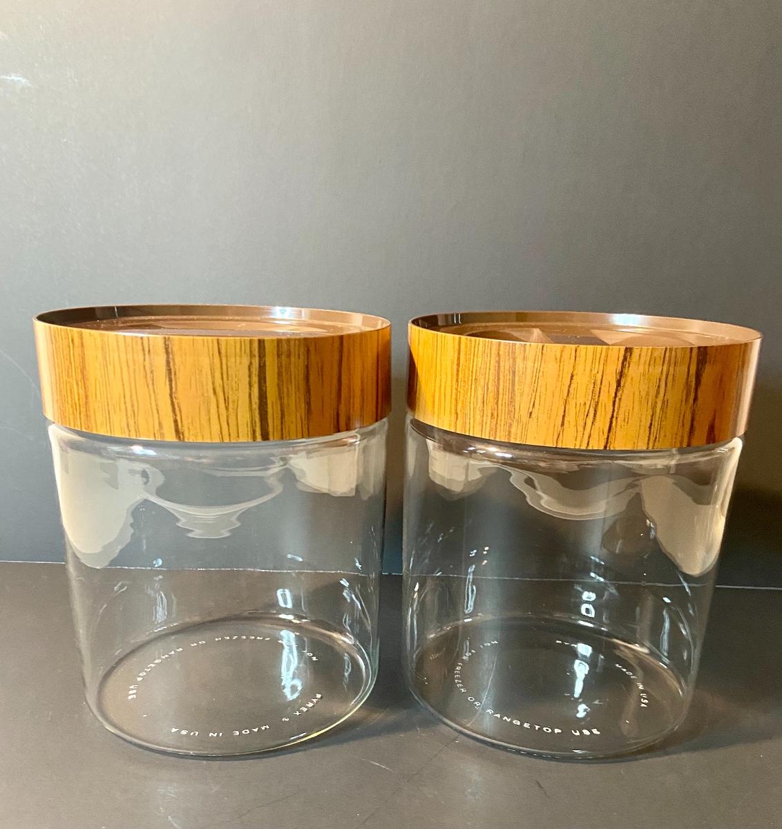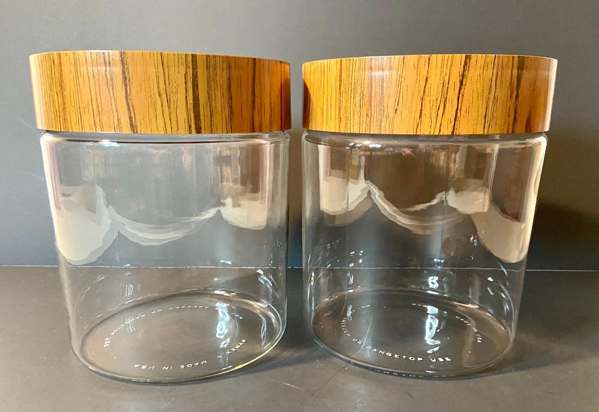 Glass Pyrex canisters w/ faux wood lid. Please see all pictures as they are the best representation of the items. The pictures show condition, measurements if taken, and what is included in the lot. Due to the large amount that we photograph and the time frame, we are not always able to take measurements. All items unless noted, are pre-owned and have been used. If you purchased furniture, you must bring help. We do not allow one person to carry large furniture out on their own. Bring help, tools and a truck for the safety of our client’s homes, and your personal safety. Company policy. Thank you.