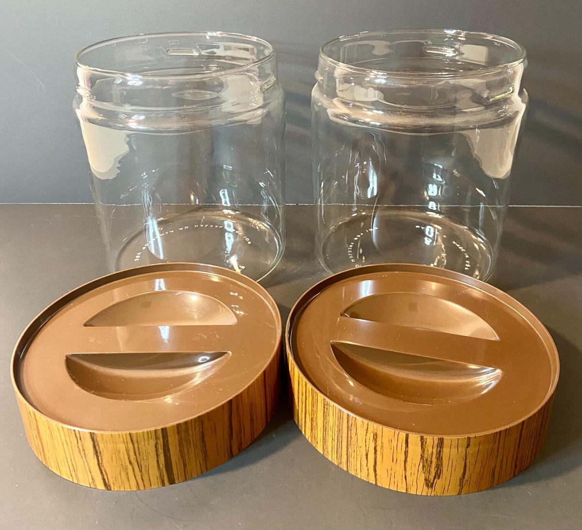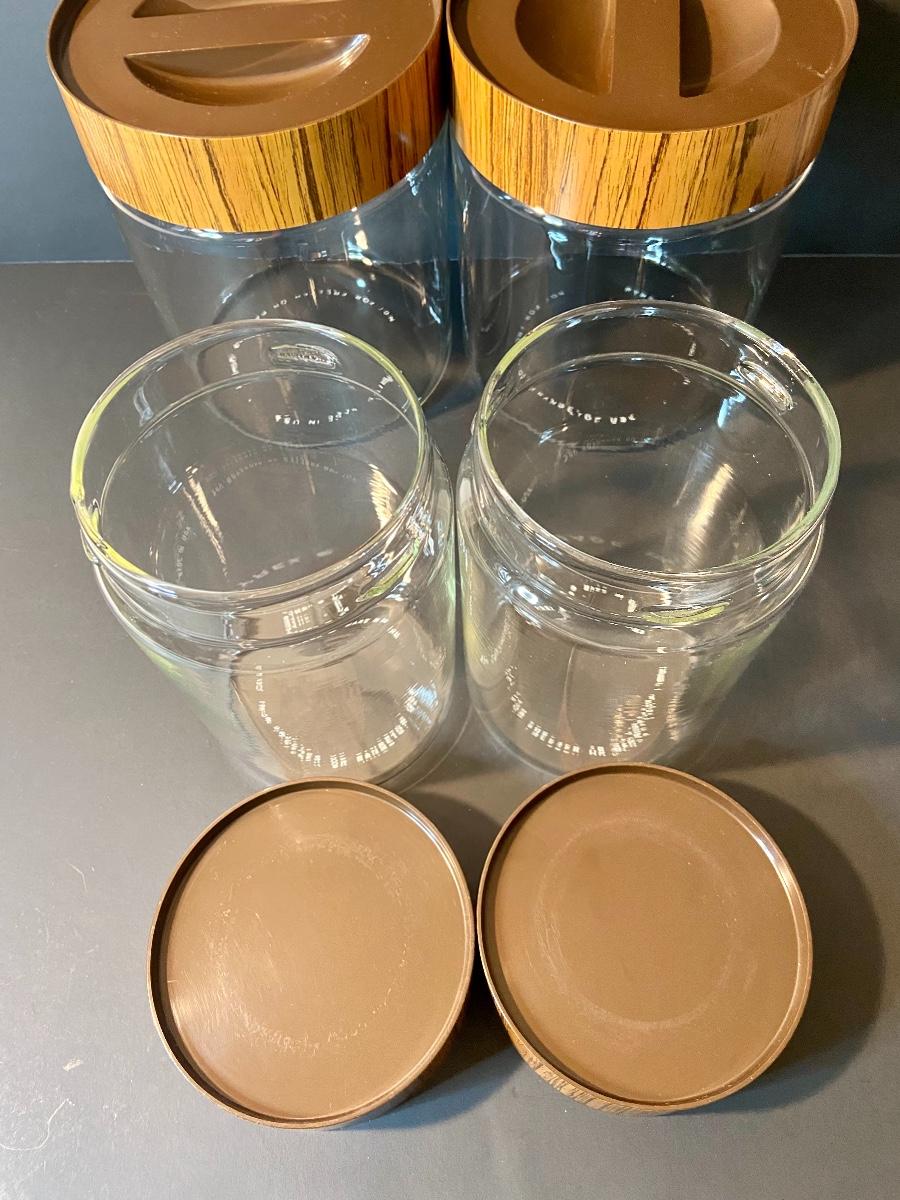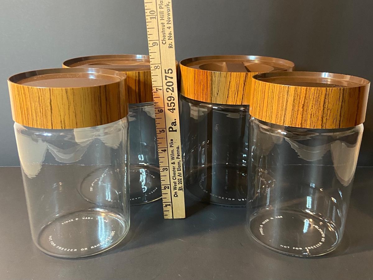 Lot 234: Vintage MCM "Wood Grain" Pyrex Canisters
