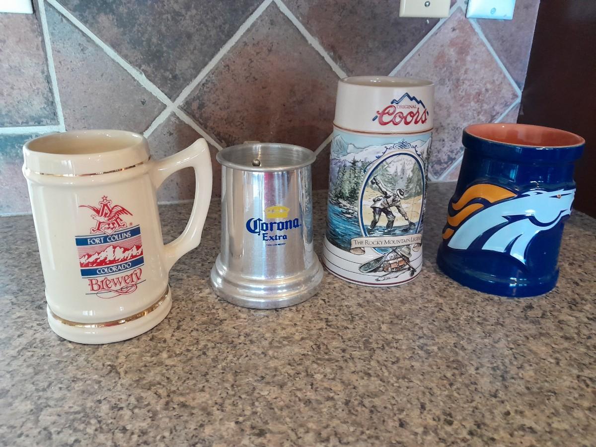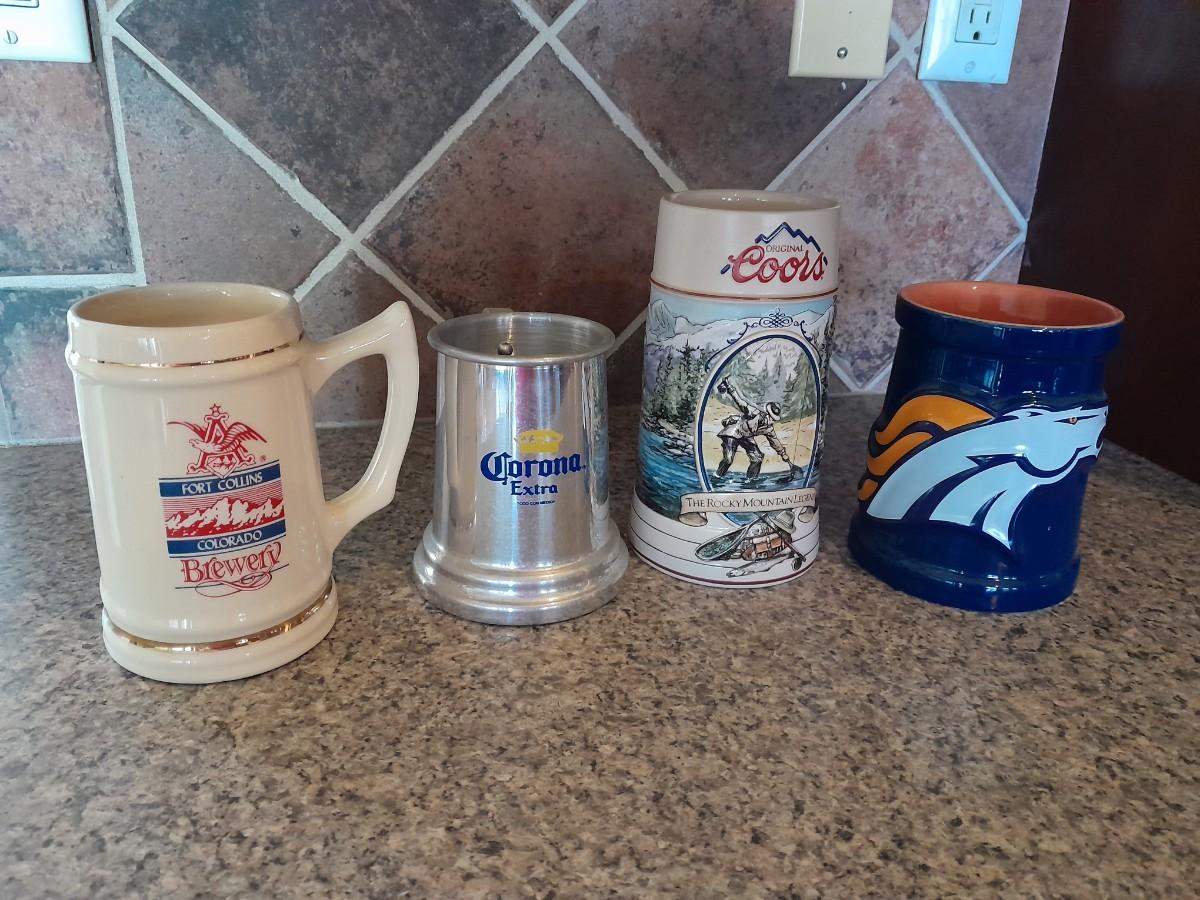 BEER STEIN MUGS BRONCOS, BUDWEISER, AND COORS BEER MUGS BRONCOS, BUDWEISER, AND COORS