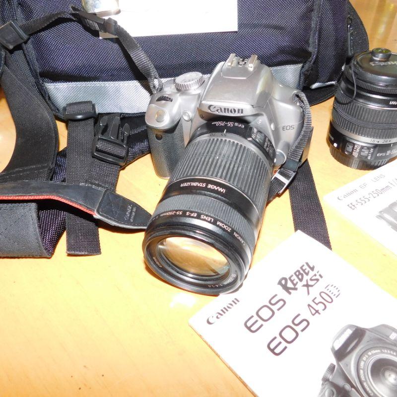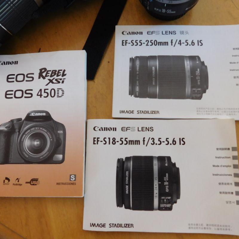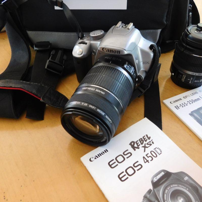 Lot 234 Canon Eos 450 camera with 2 lens and canon camera bag