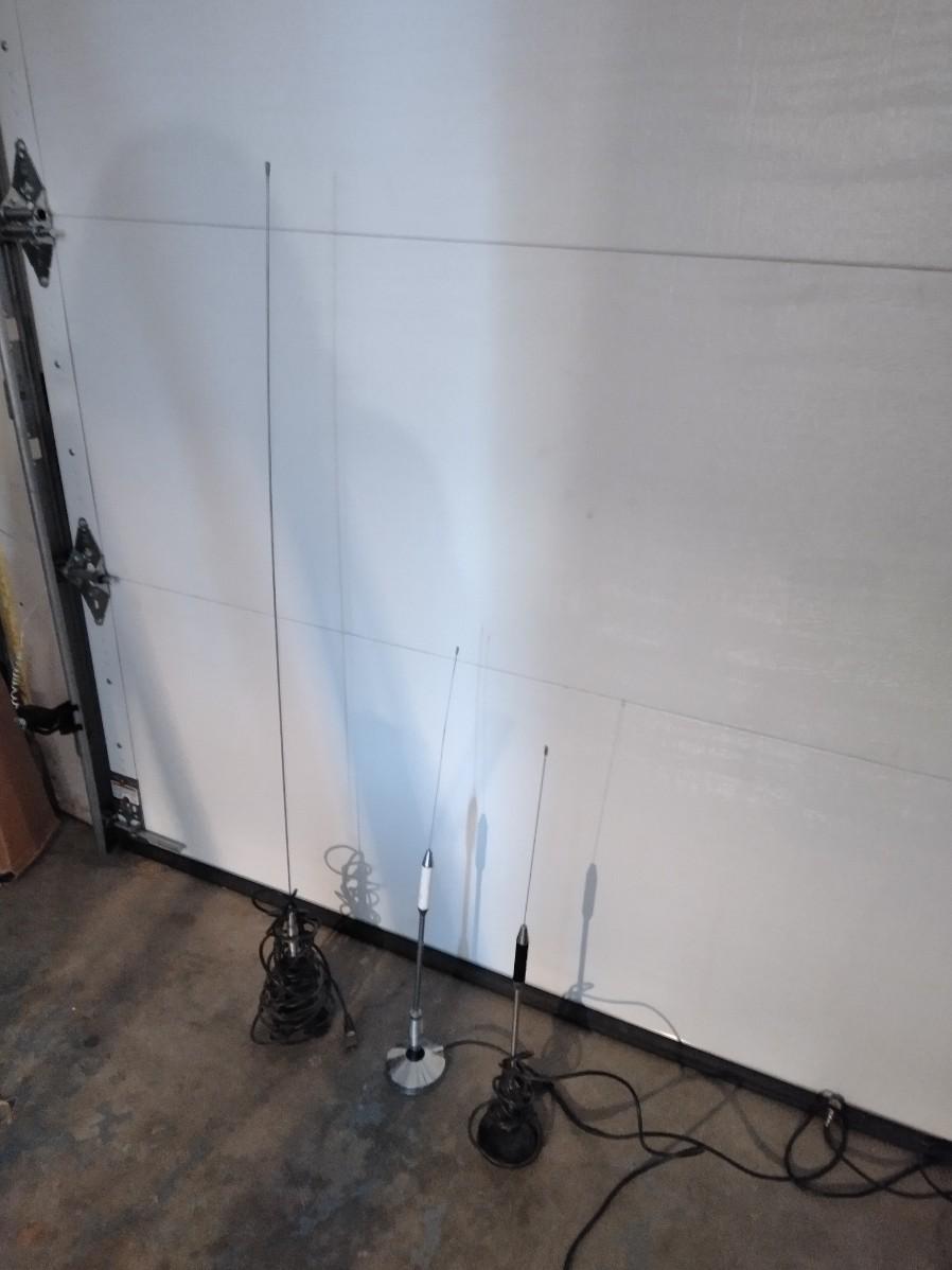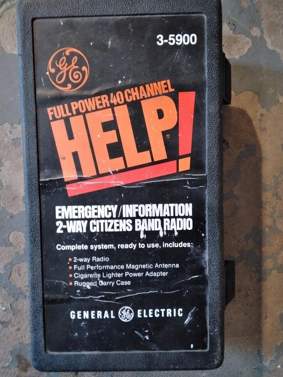 CB RADIO WITH LIGHTER PLUG-IN, AND THREE ANTENNAS MODEL GEN 730A (one has broken base), EMERGENCY CALL RADIO WITH ACCESSORIES AND CASE.