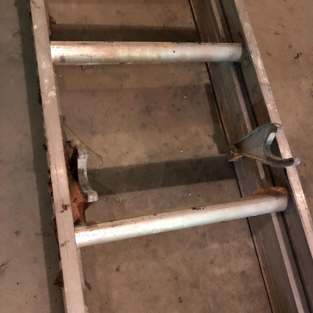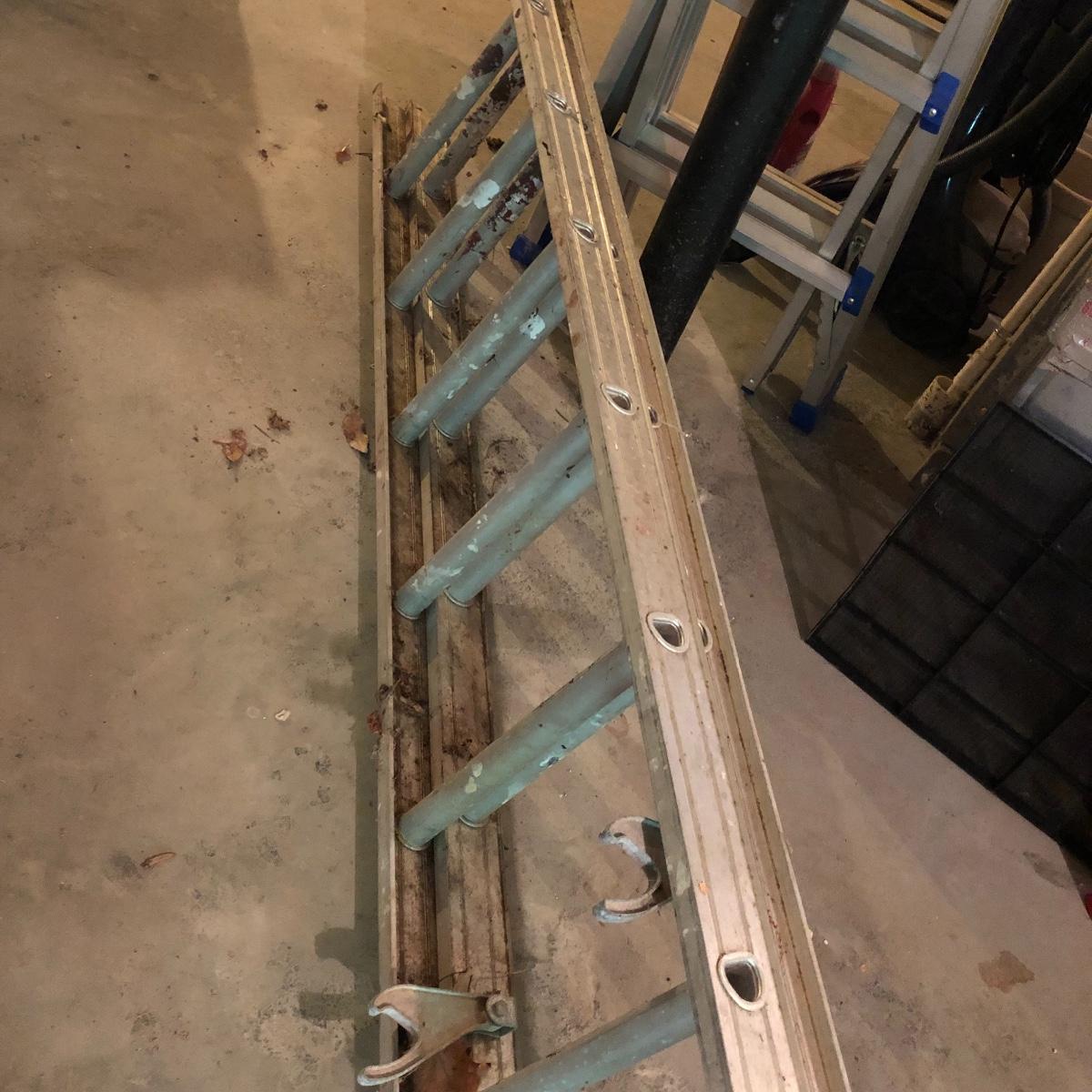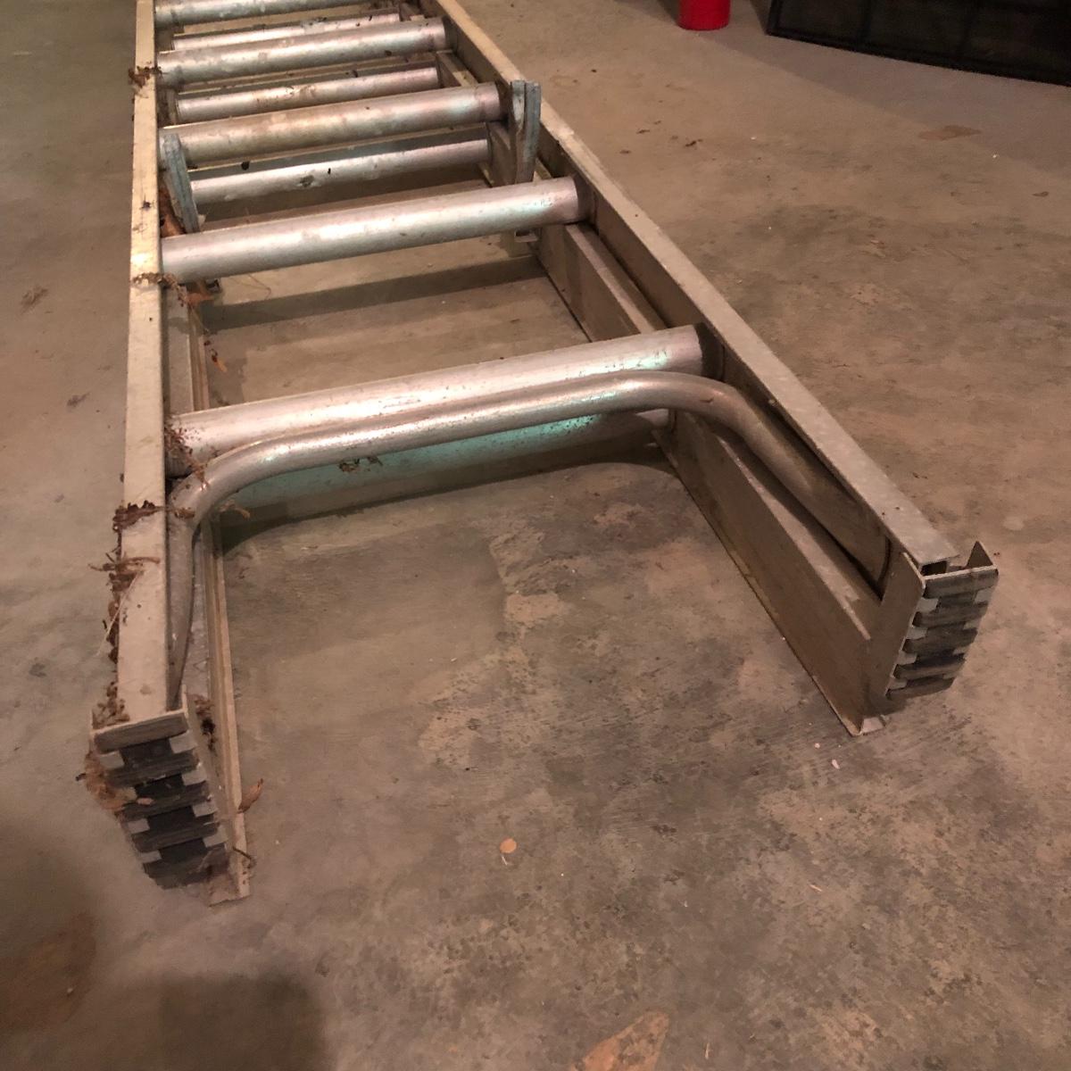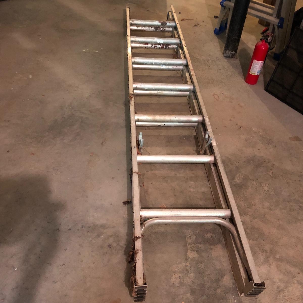 Get to what you need to with this extension ladder and multi-use ladder. The extension ladder needs a bit of cleaning as it was stored outside. It measures approximately 16’. The multi-use ladder can be used as an “A-Frame” ladder or extended straight as an extension ladder. Local pick up only.