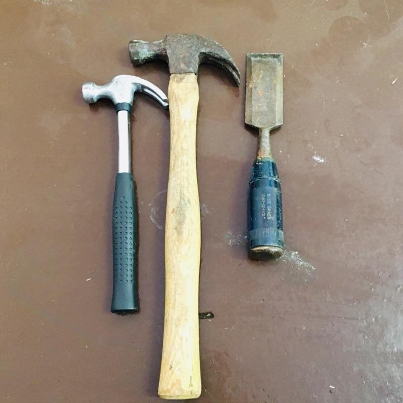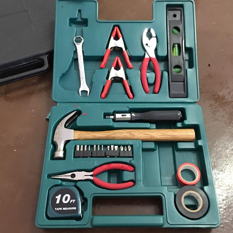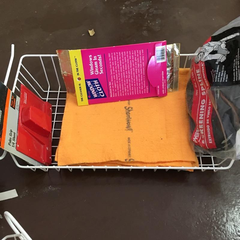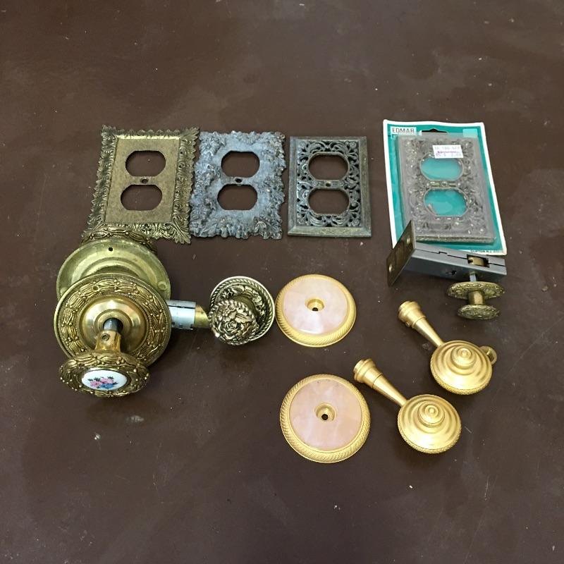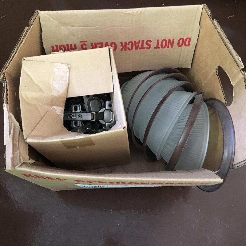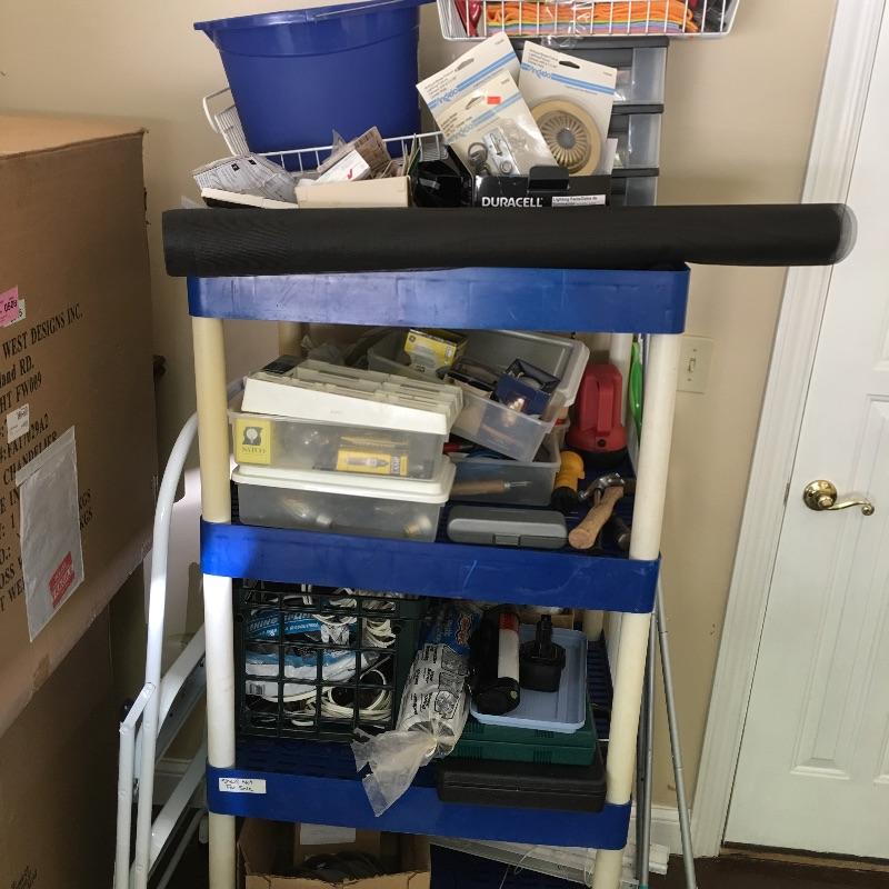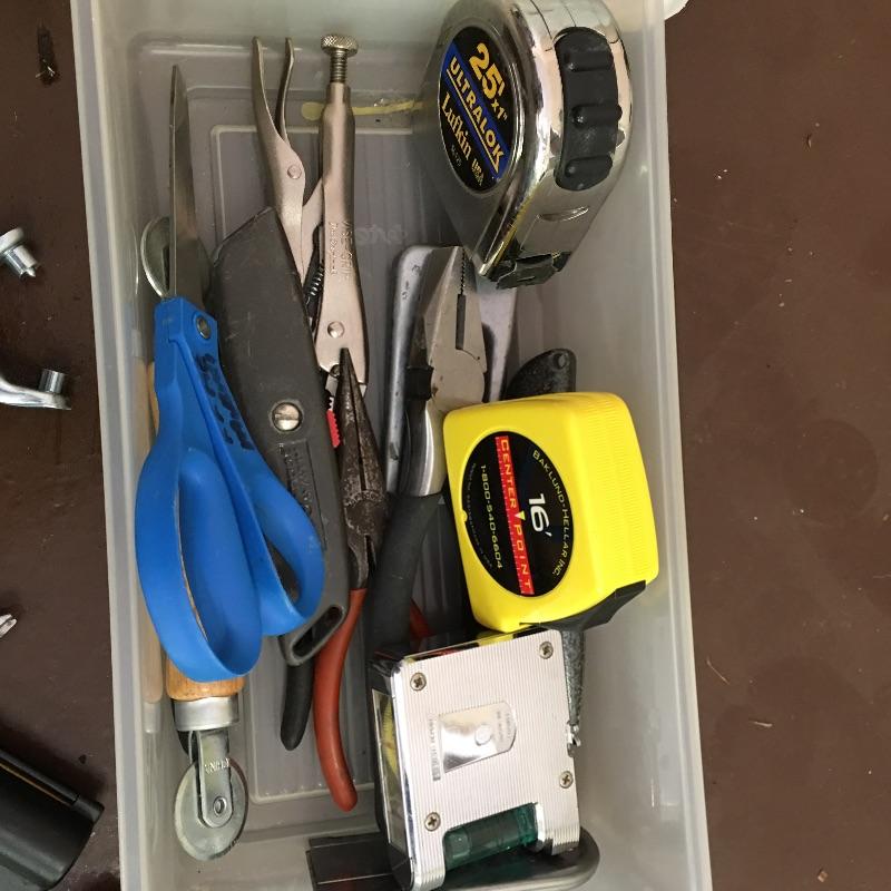 Large selection of household goods including hardware, nails, screws, variety of bulbs, extension cords, spice shelves, tools, step stool, blinds and more - see pictures. Shelves not included.