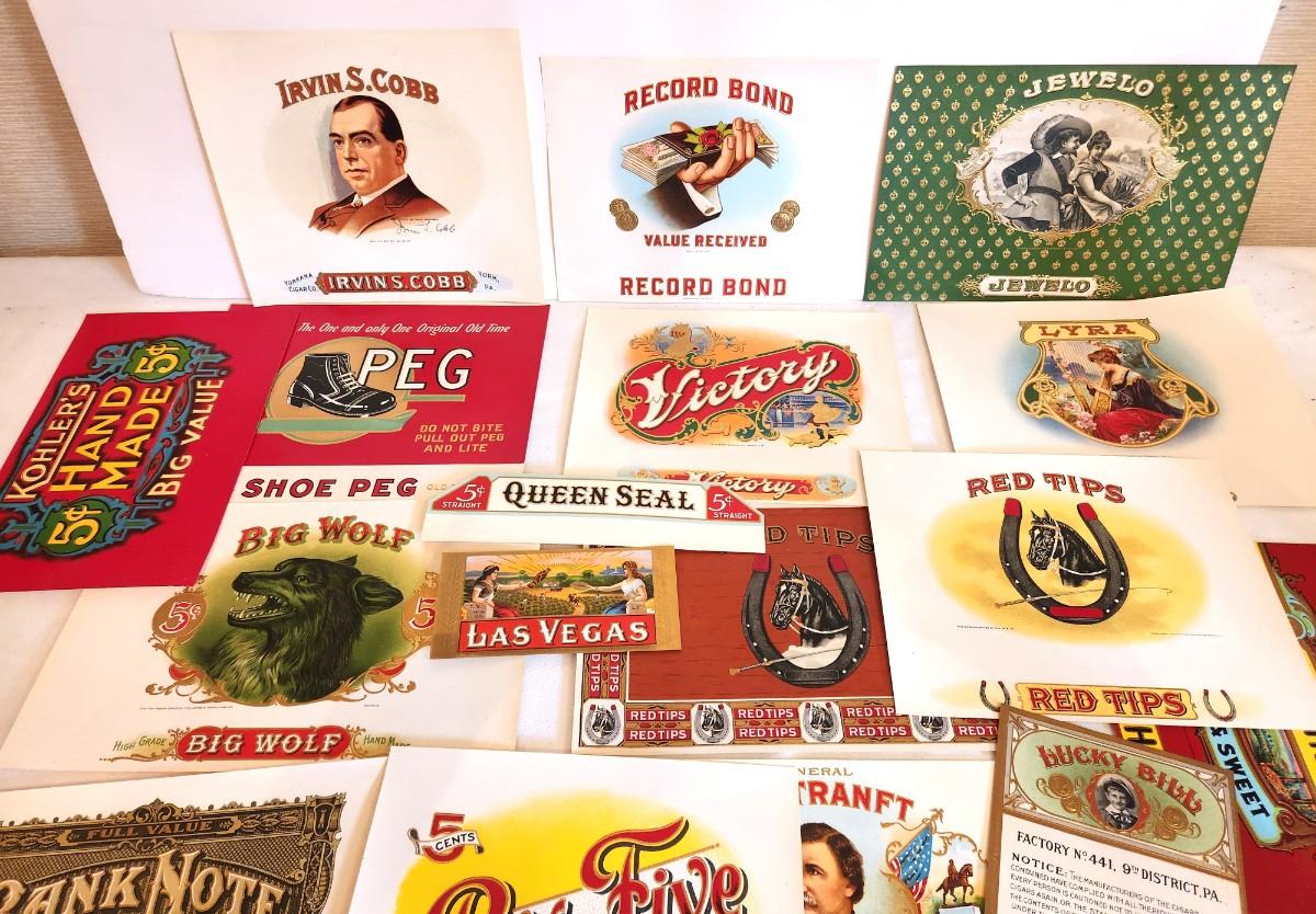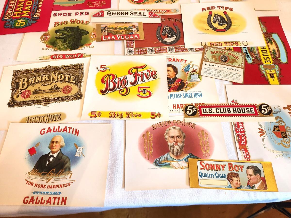 You get all you see here - large cache of unused antique cigar bands and cigar box labels - many different companies - approximately 50 in all.