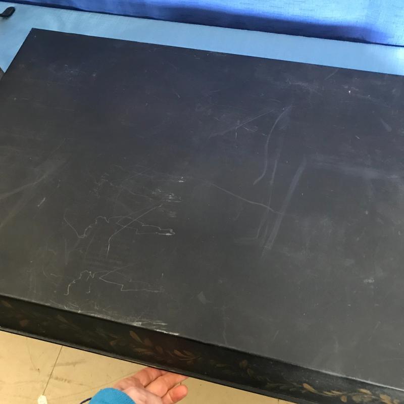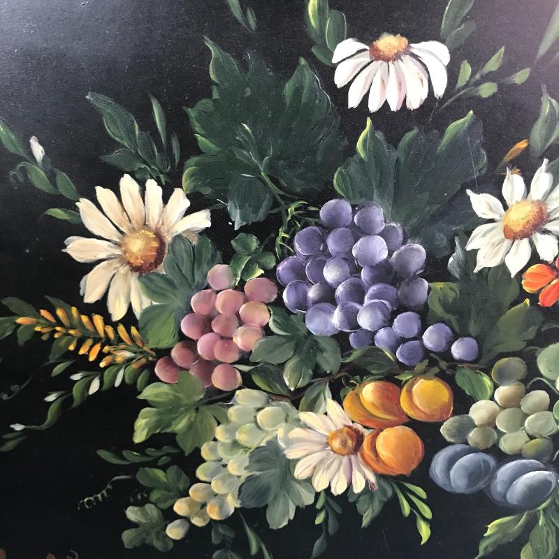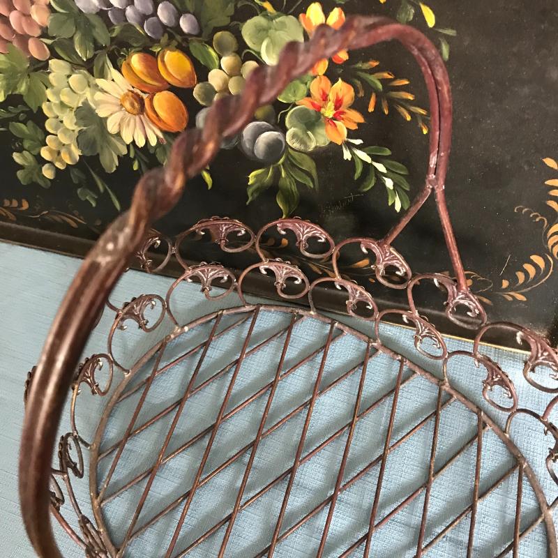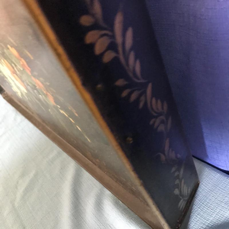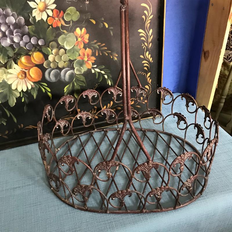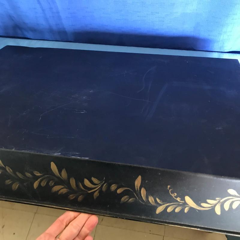 Lot includes hand painted metal tray (approx. 26” x 18” x 3.5”), metal basket, and tall candleholder (approx. 32” tall). Tray is about 2" thick, has one handle and hole on side. Must have other uses. No shipping available. Local pickup only in Maggie Valley, NC.