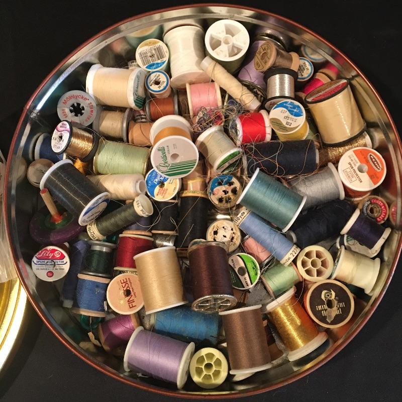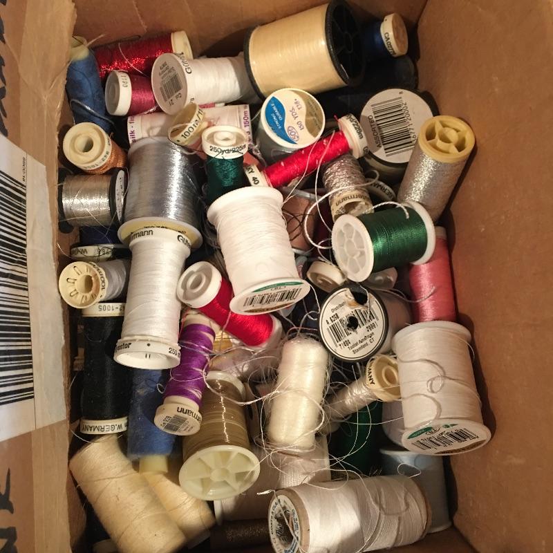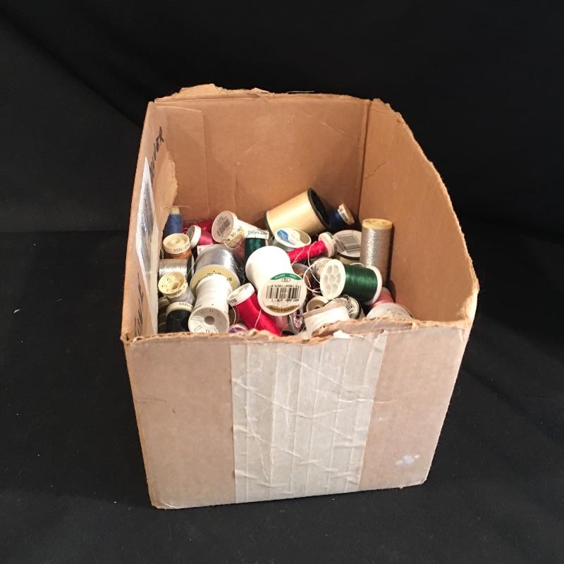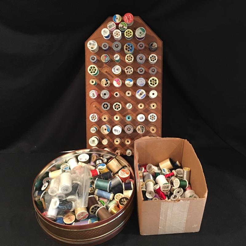 Oodles of sewing thread with one thread rack includes thread by Gütermann, Coats, Ultra, Lilly, Belding Corticelli and more. A great chance to own a large array of thread in a variety of colors.