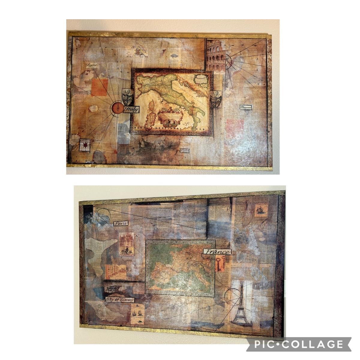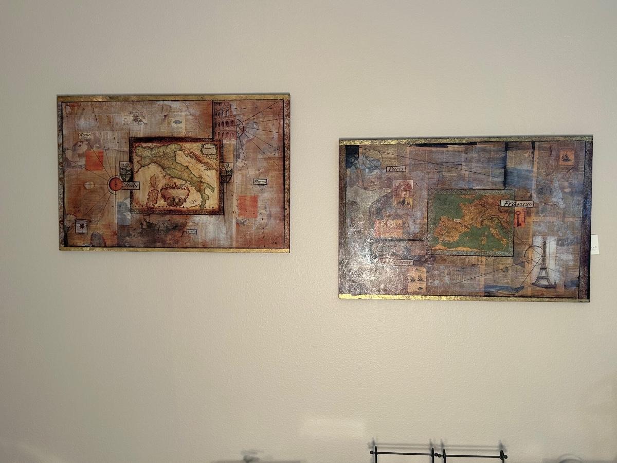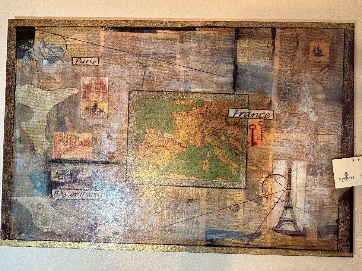 Art prints from Haverty's 36" x 24". The pictures don't do the justice. Mounted on wood--very good quality