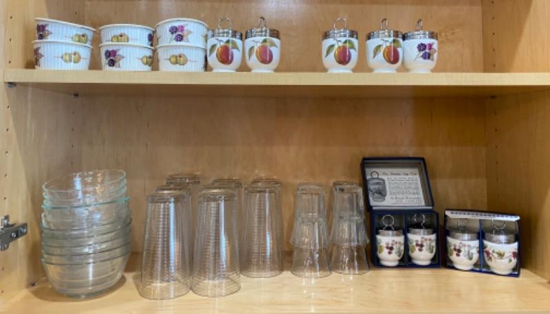 Lot of Royal Worcester egg cups / and ramekins with glass bowls and glasses