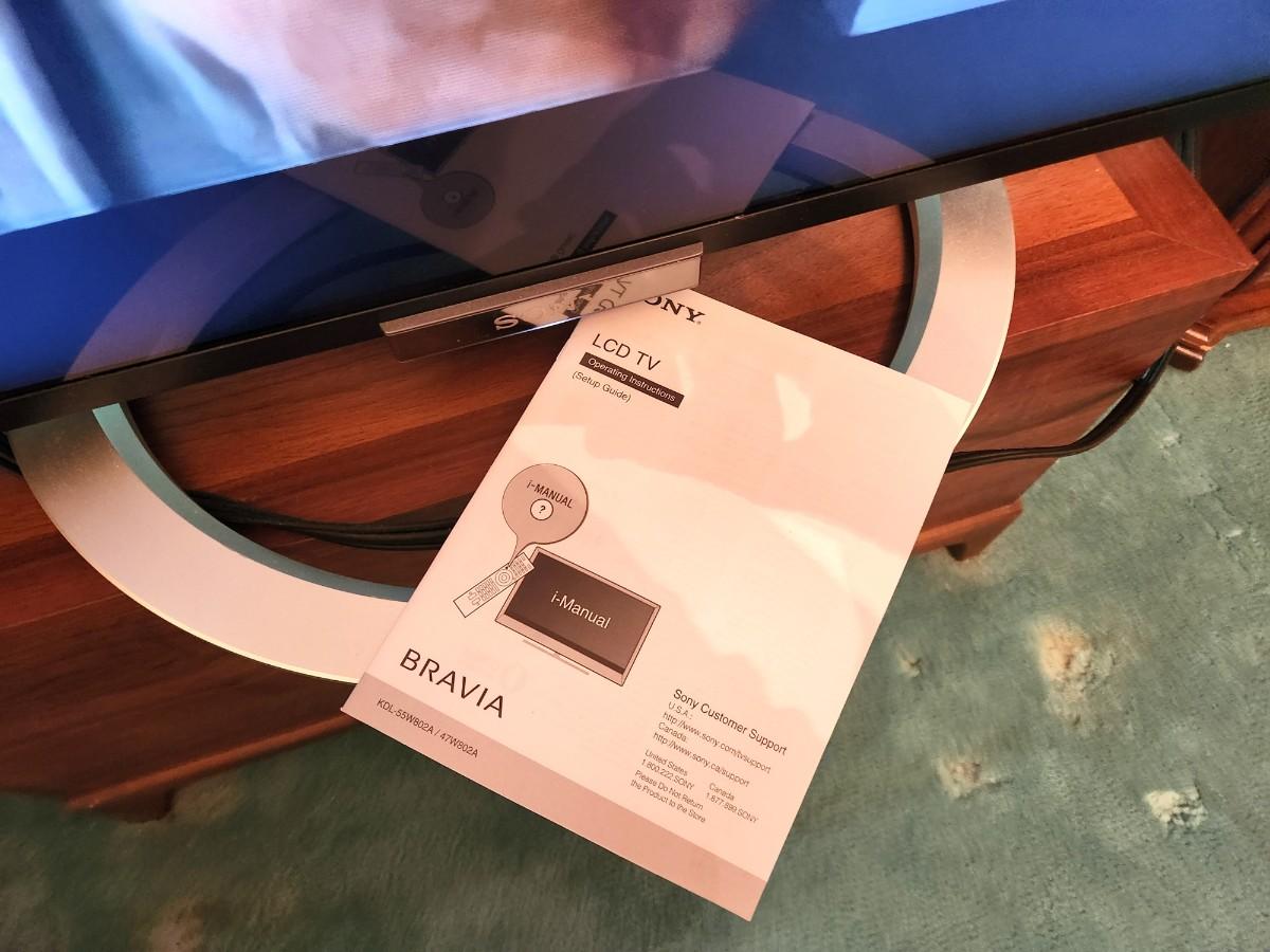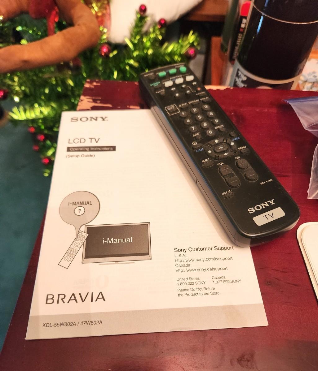 Sony Bravia Model KDL-55W802A 55" LCD-TV on stand - good picture quality w/remote and manual. Comes with a Sony DVD-VCR combo (no remote). Works fine.